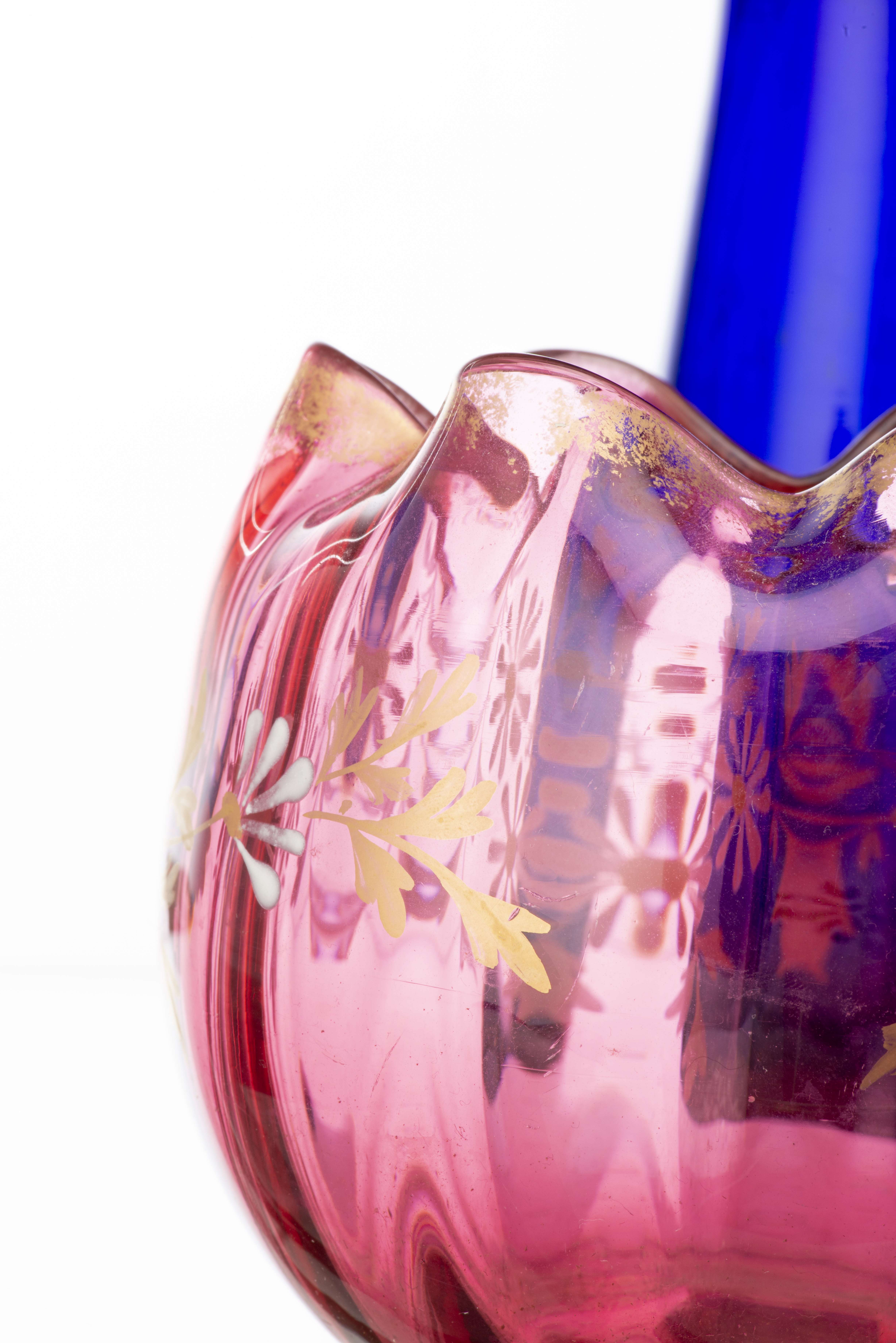 - 1 vase coloré rose à décor de fleurs. H. 10 & D. 11 cm