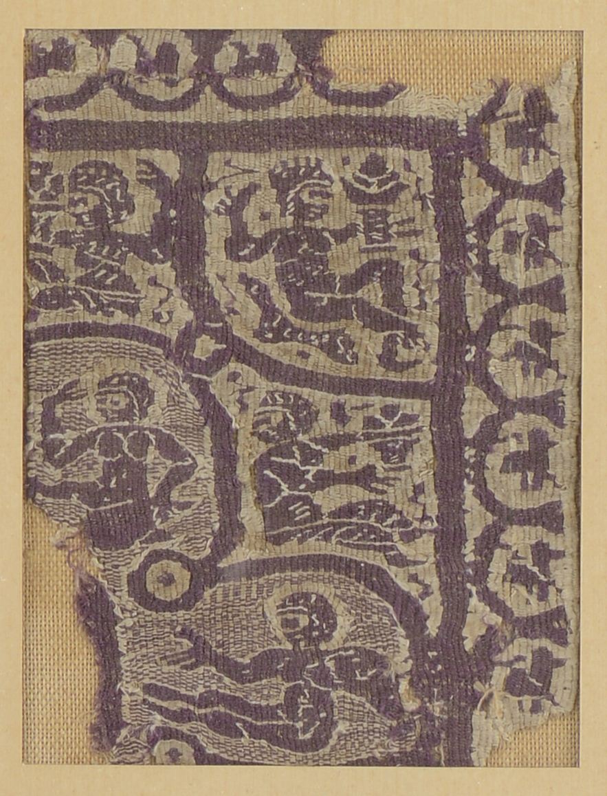 Tissu Copte représentant des personnages de profil et des oiseaux