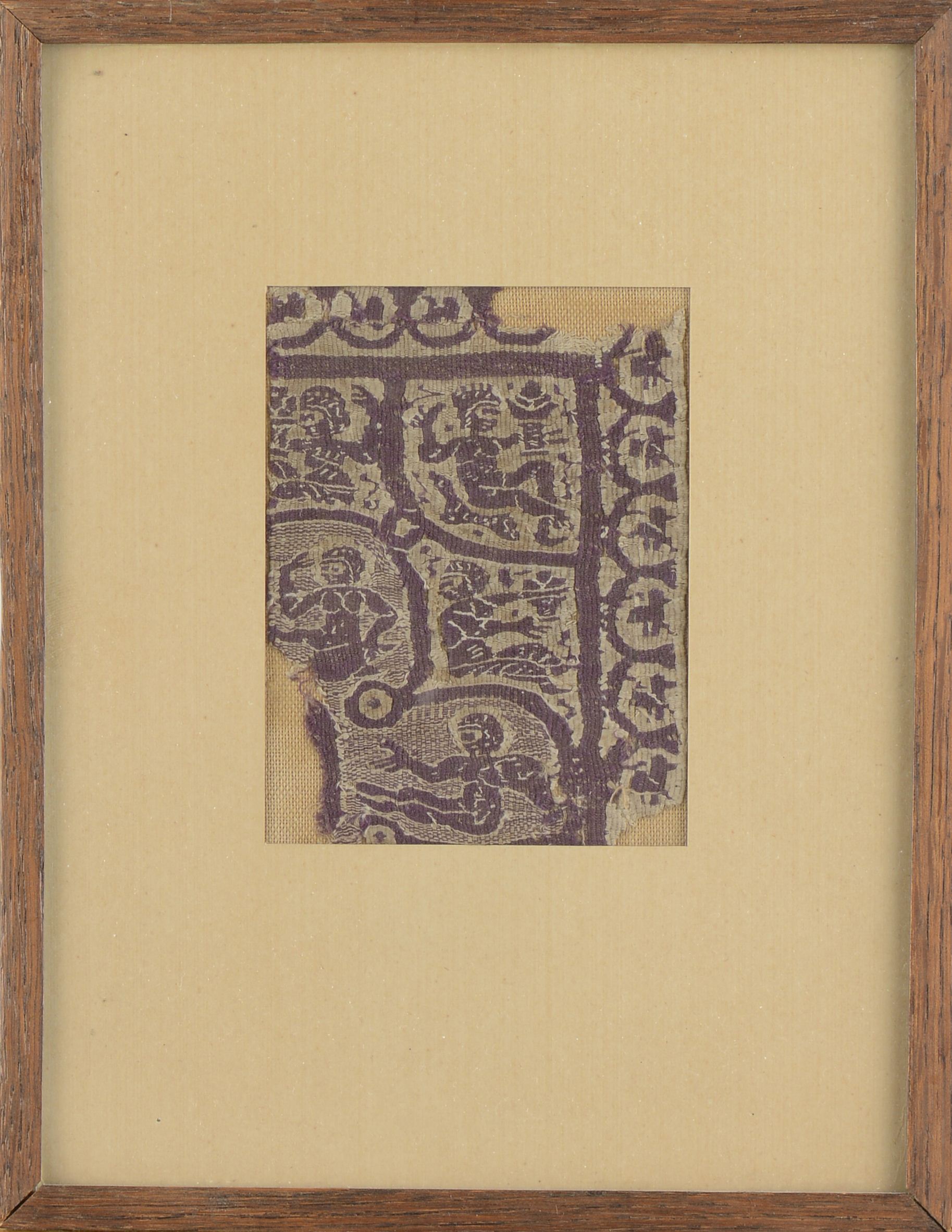 Morceau d'étoffe tissé encadré