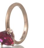 Deux bagues en or rose .375, avec deux rubis synthétiques rouges en forme de cœur, par Dodo, avec une inscription "100% amore"