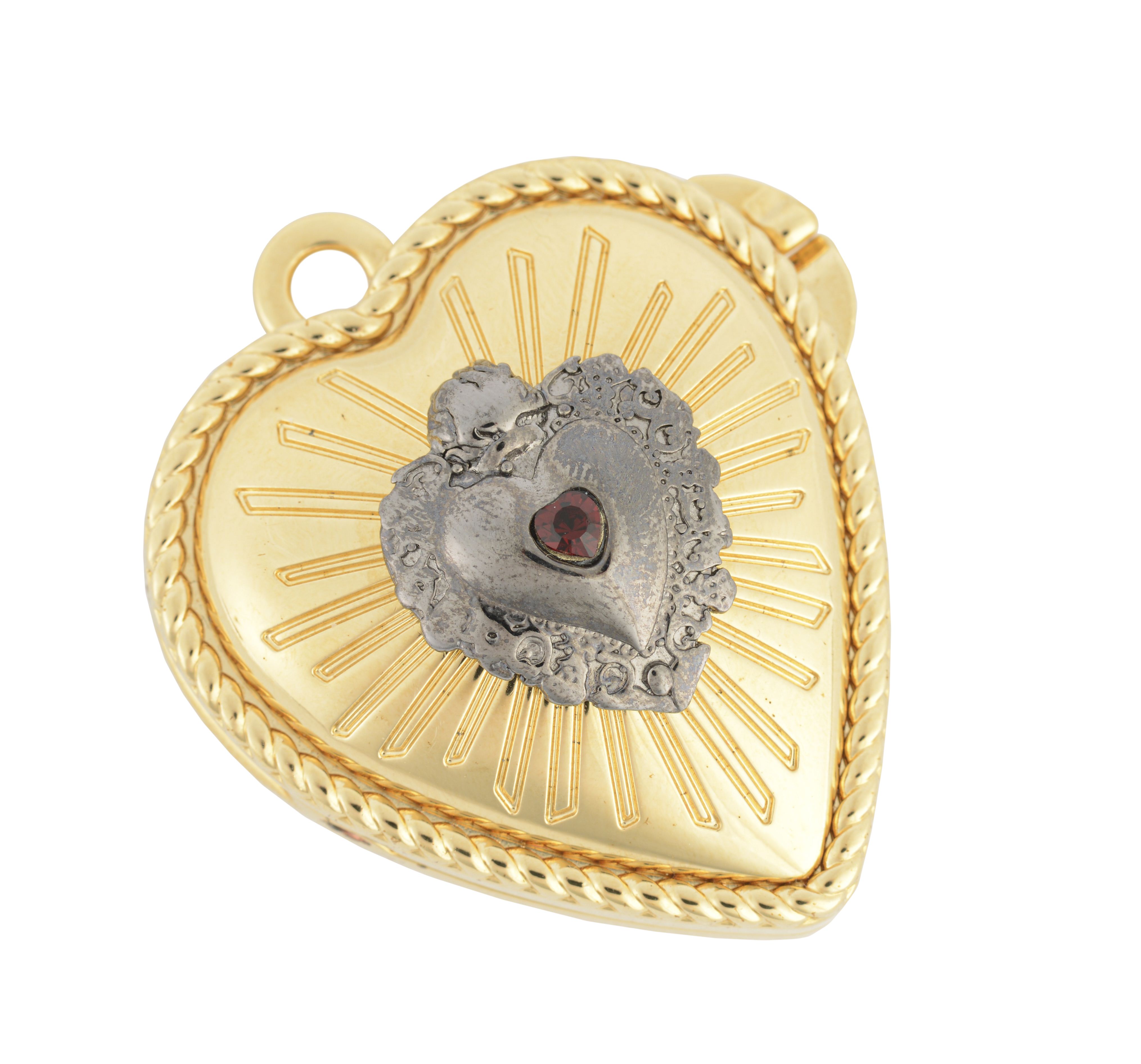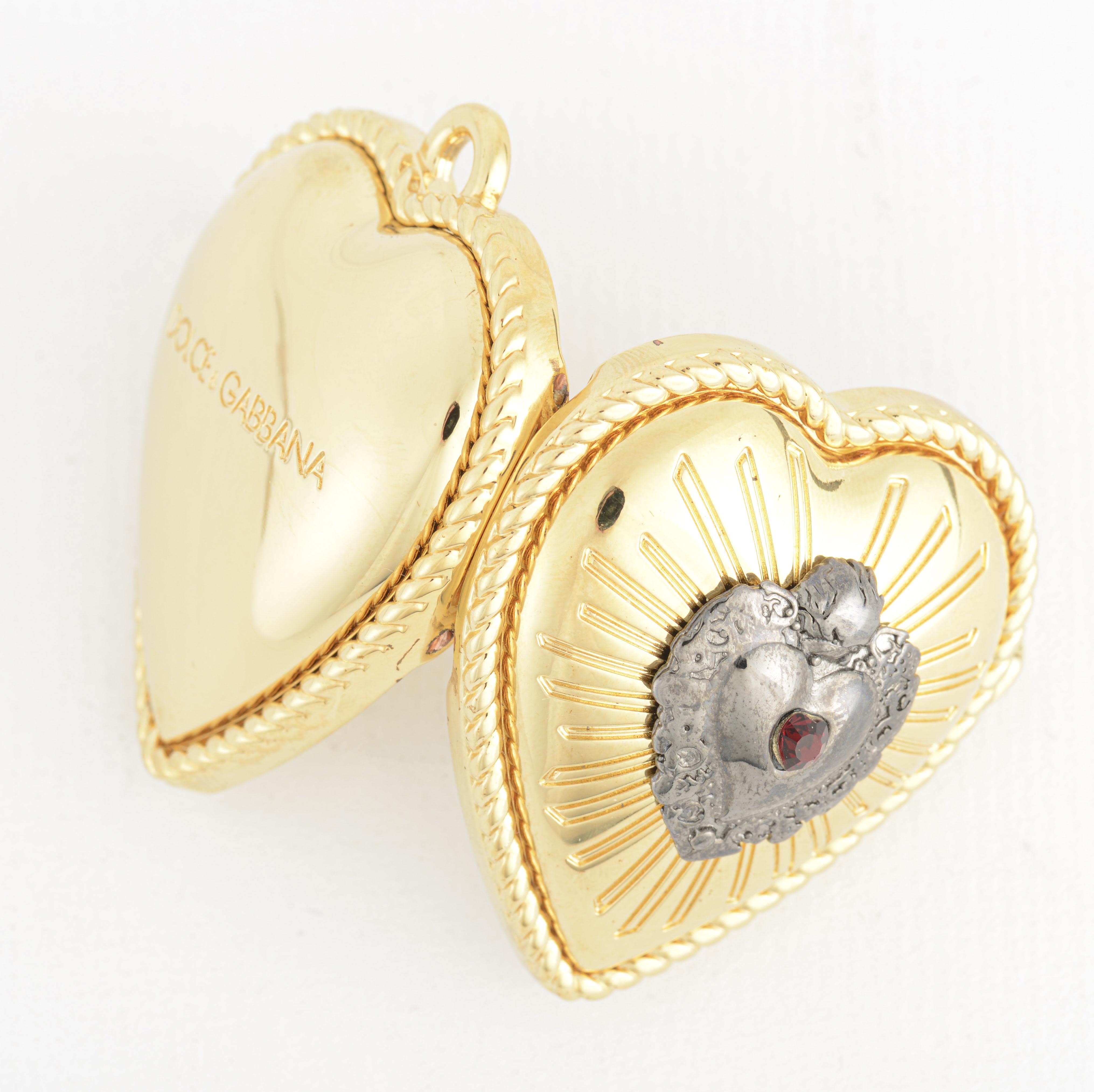 DOLCE & GABBANA, pendentif en métal doré en forme de cœur à décor d'un ex-voto, avec un miroir intérieur.