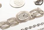 Lot de bijoux en argent composé de trois bagues, une paire de boucles d'oreilles, une chaine, trois bracelets, une montre de dame BETINA en argent .800 et un porte-clés.