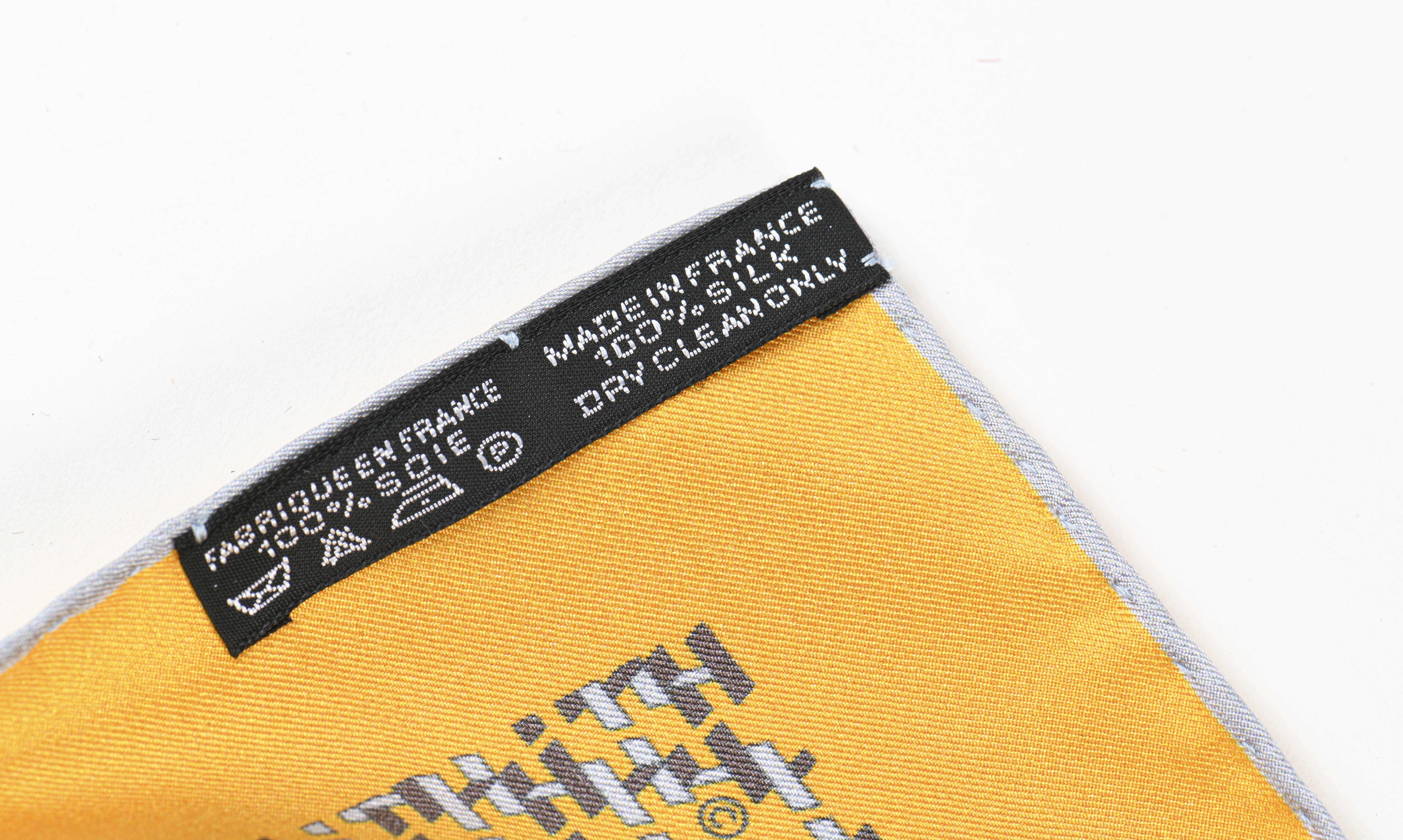 - HERMÈS "Façonnée Grand H", grande pochette en soie à fond jaune 41 x 42 cm