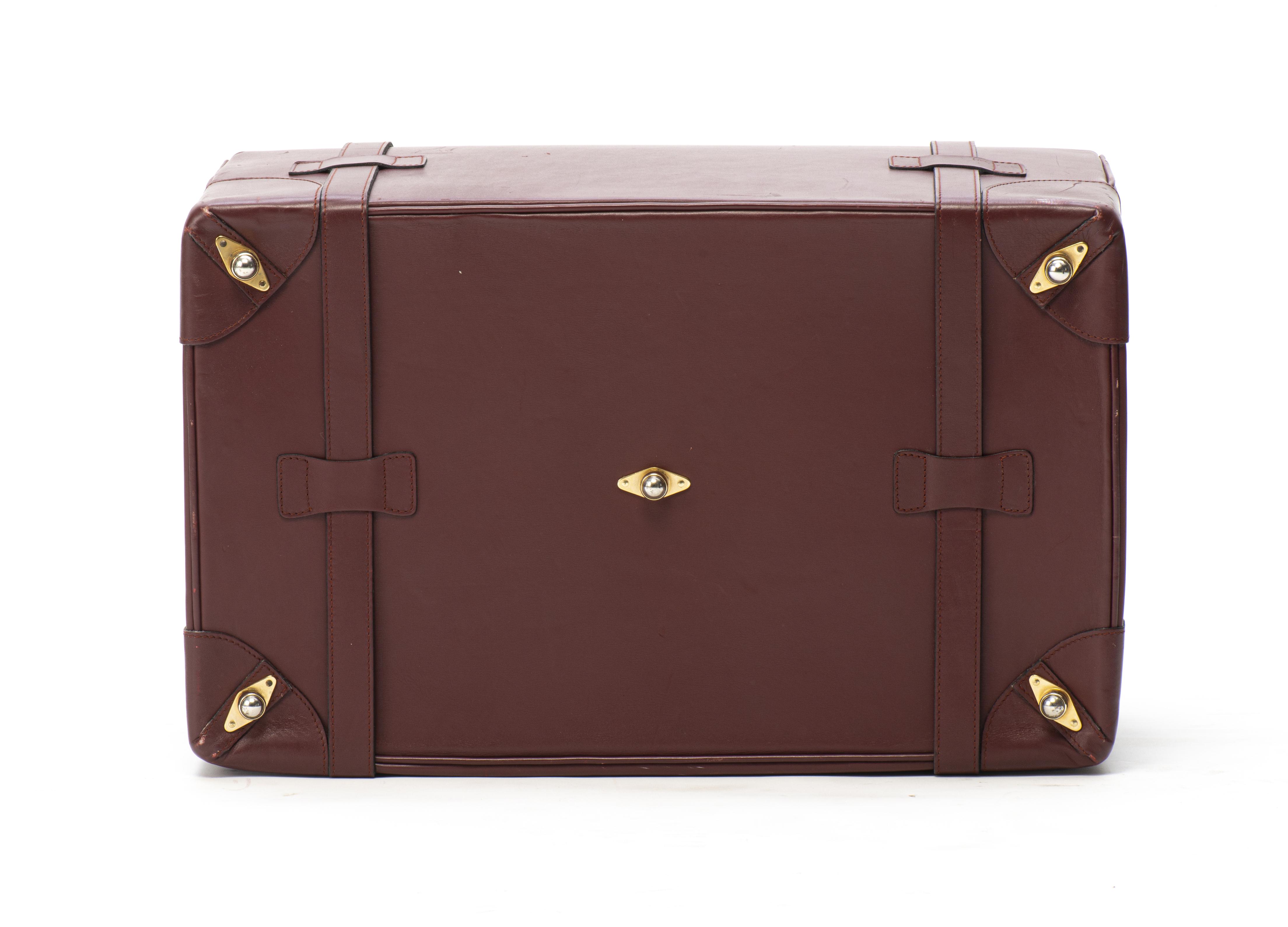 CARTIER. Mallette de toilette en cuir lisse grenat "Square Mouth"