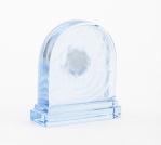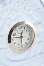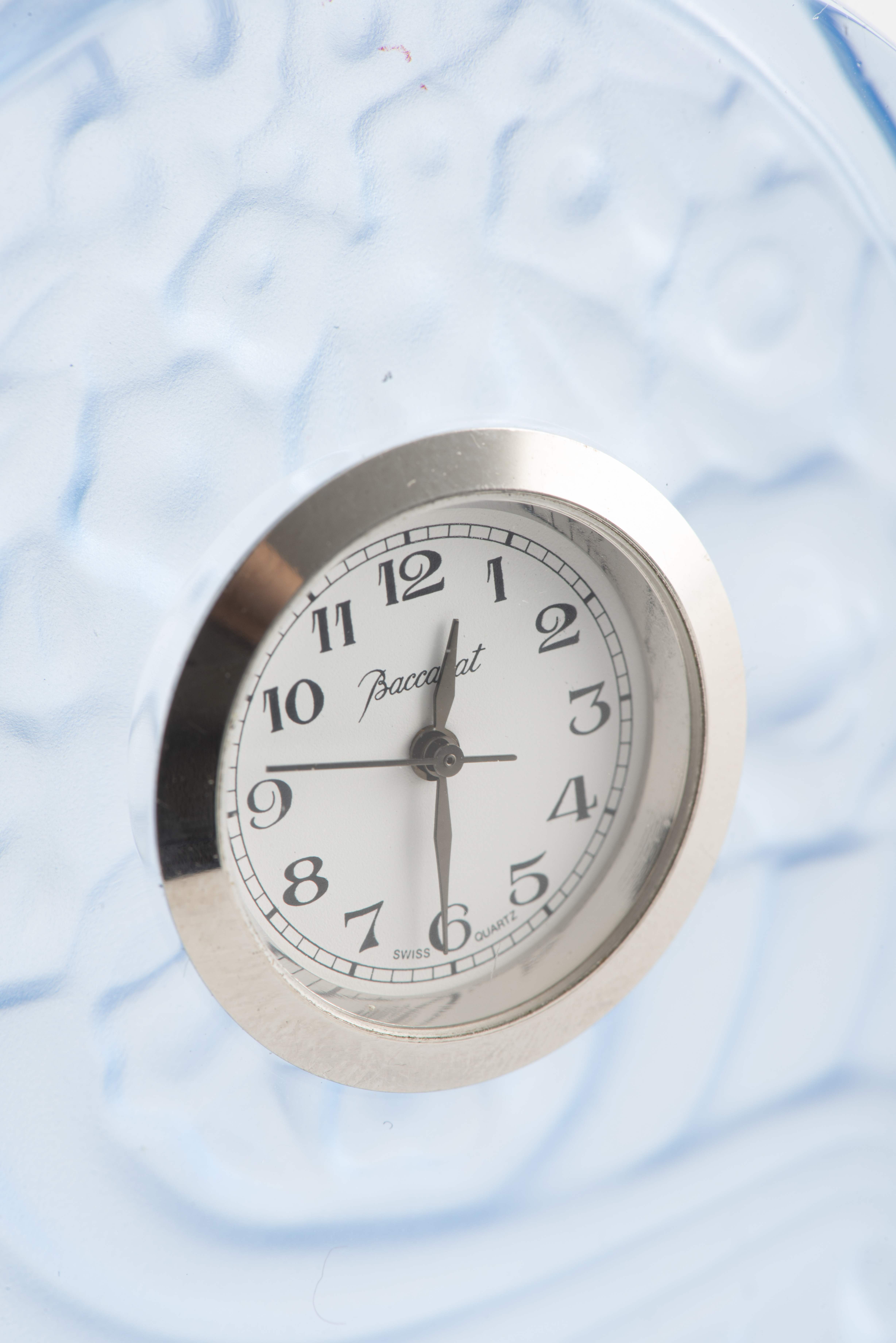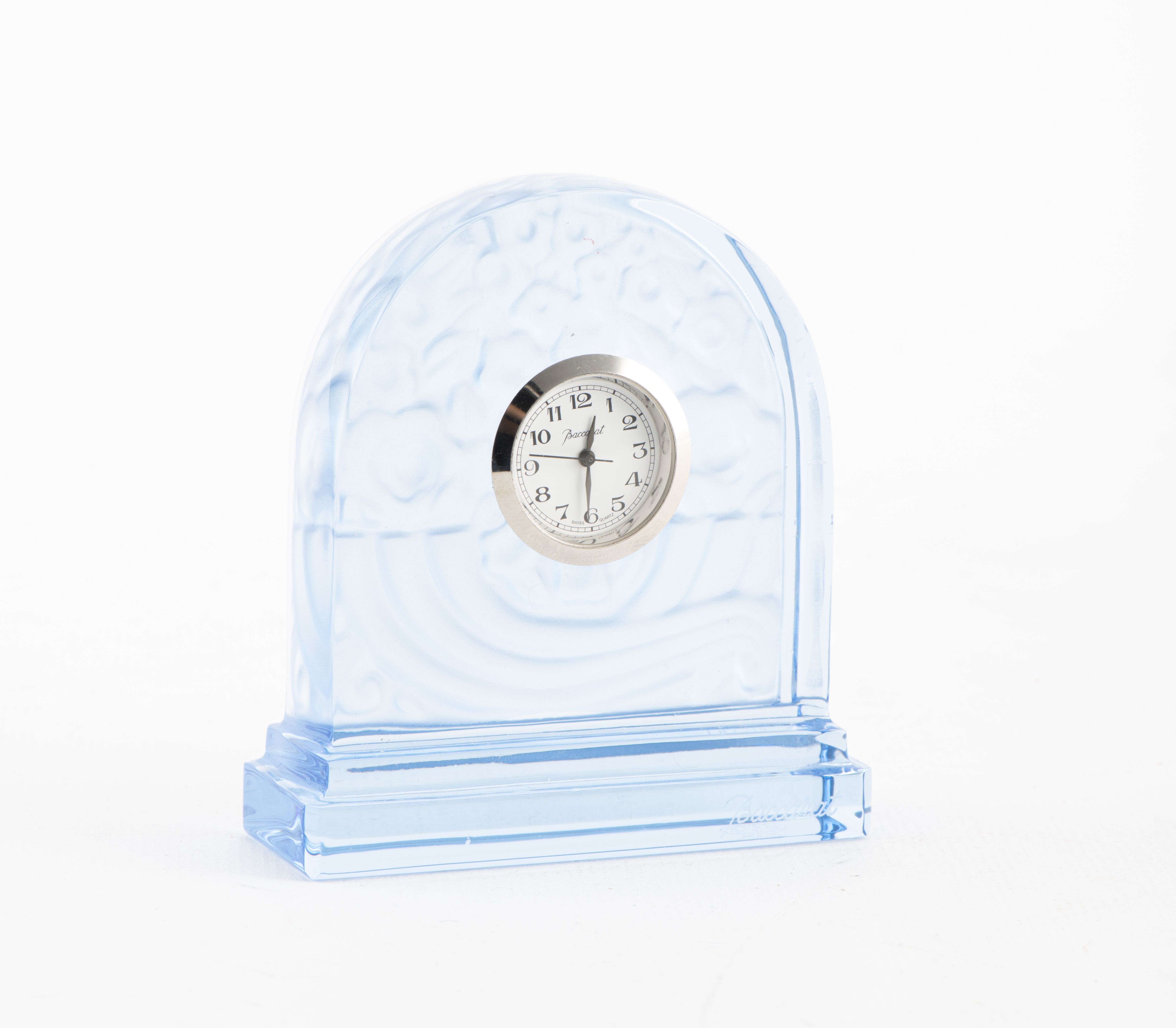 BACCARAT, petite pendule en cristal bleu ciel, signé en bas à droite.