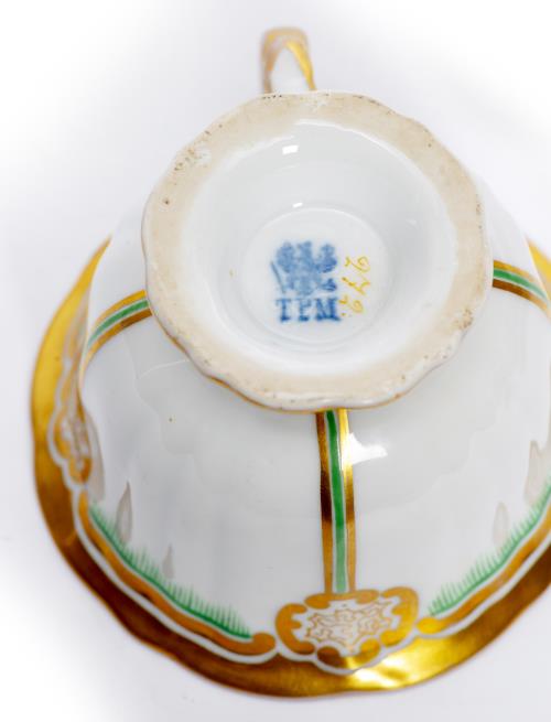 Quatre tasses et sous-tasses à chocolat en porcelaine de Paris et de KPM