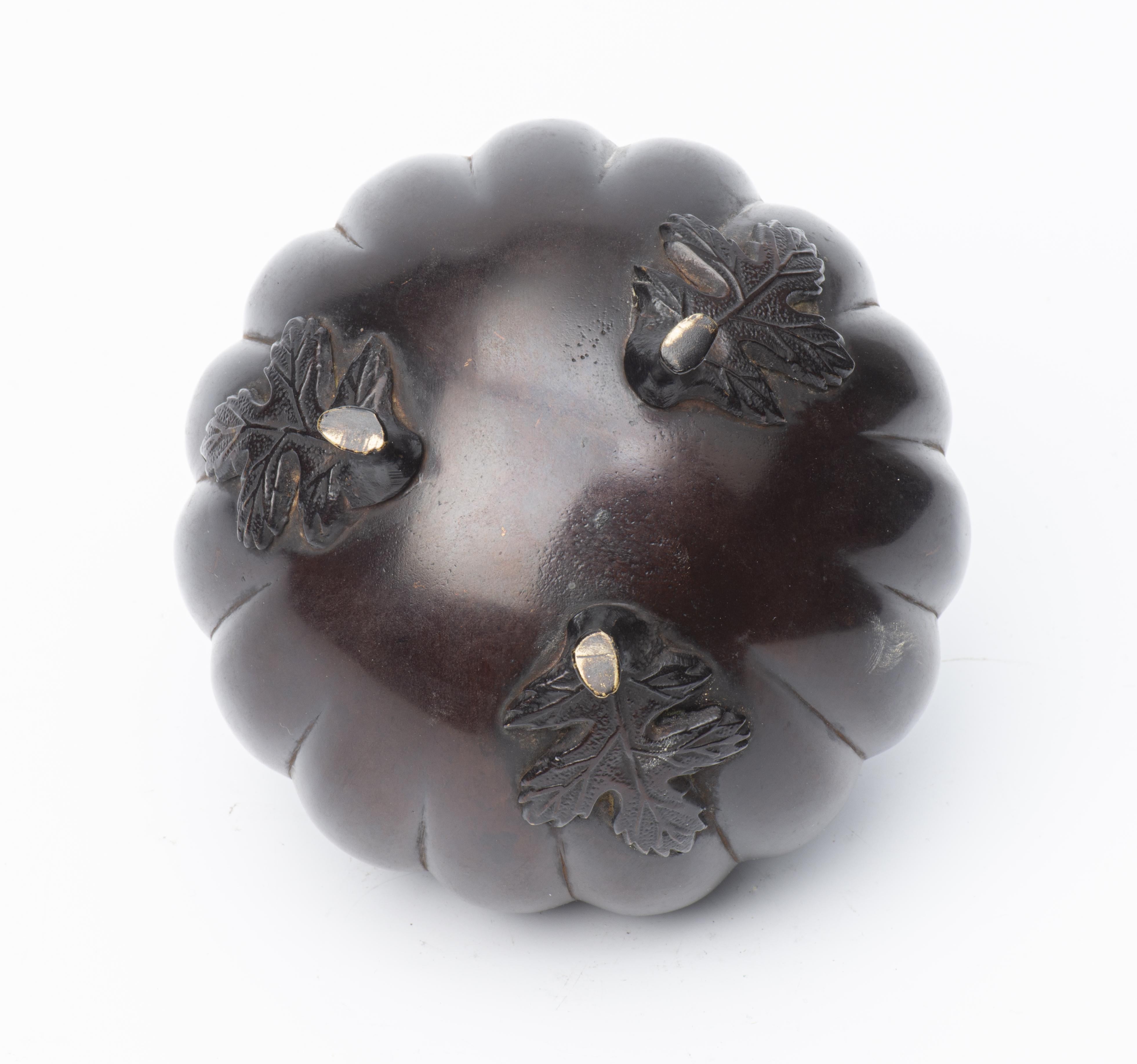 Japon, Brûle-parfum citrouille en bronze à patine brune