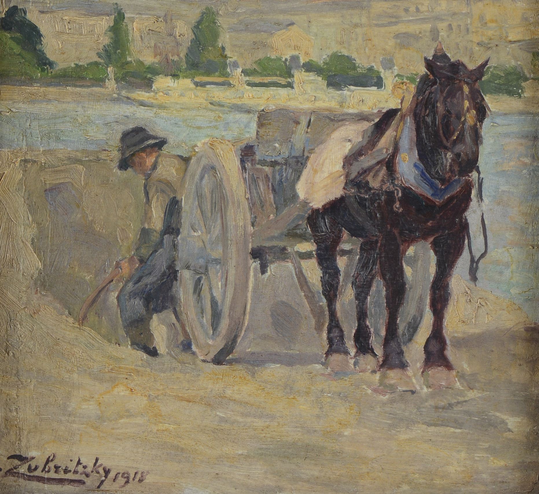 Lorand ZUBRICZKY (1869-1948), Charrette au bord de l'eau