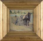 Lorand ZUBRICZKY (1869-1948), Charrette au bord de l'eau, huile sur bois, signé et daté 1918.