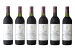 6 bouteilles de 75 cl, 1 caisse en bois ouverte.