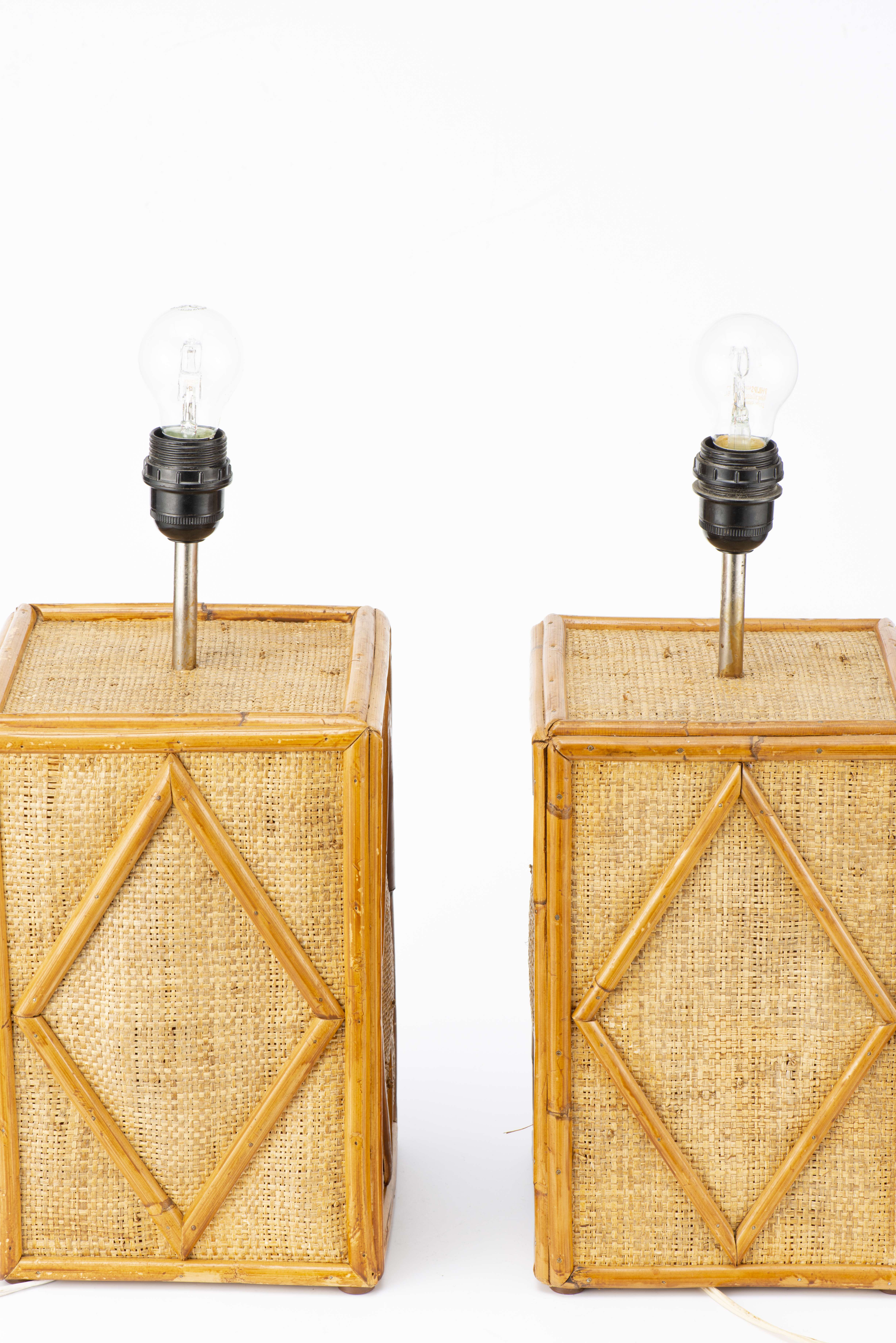 Travail des années 50, Paire de lampes en bambou