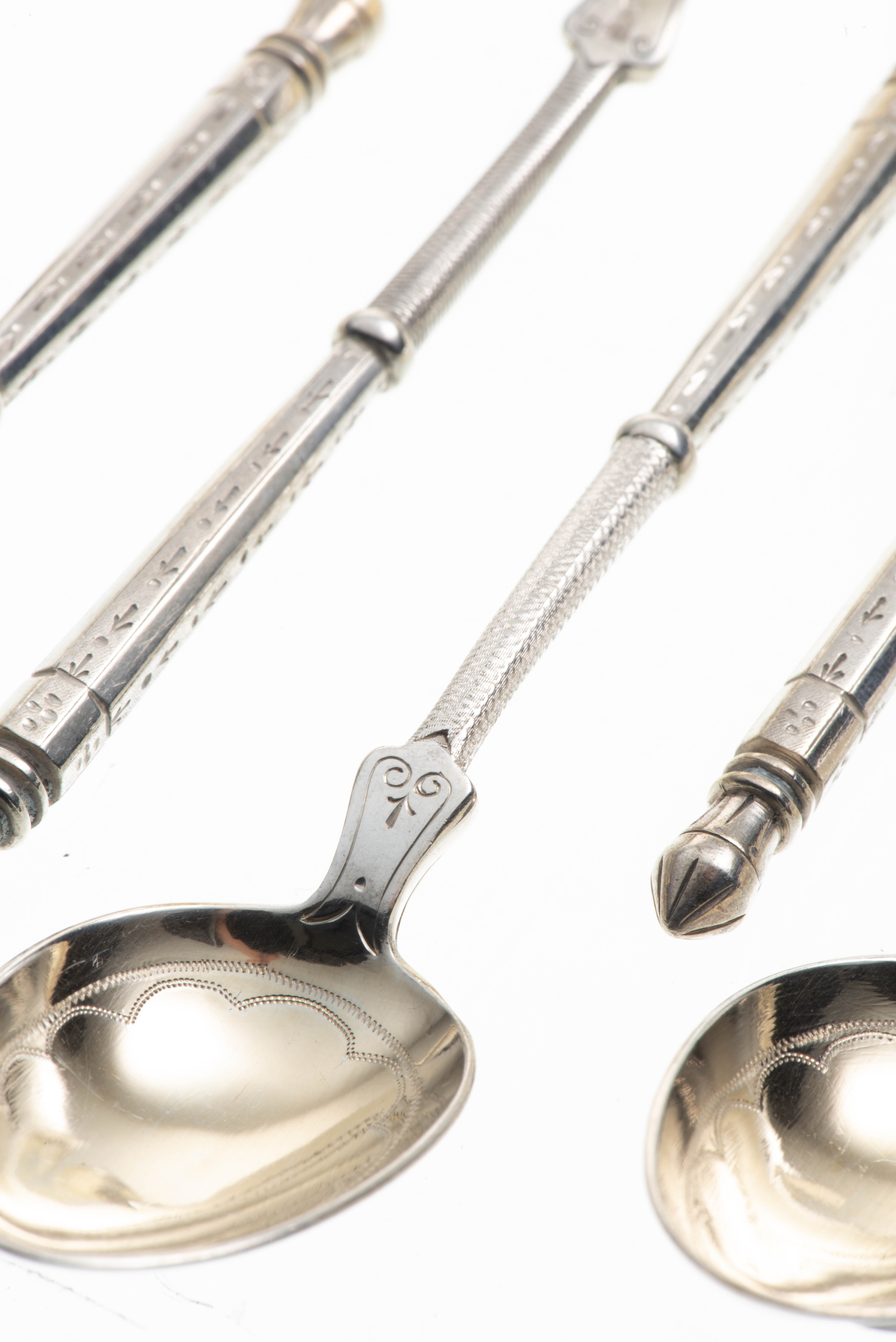 JEZLER, Dix cuillères à moka en argent .800 à manche de style Renaissance, cuilleron en vermeil.