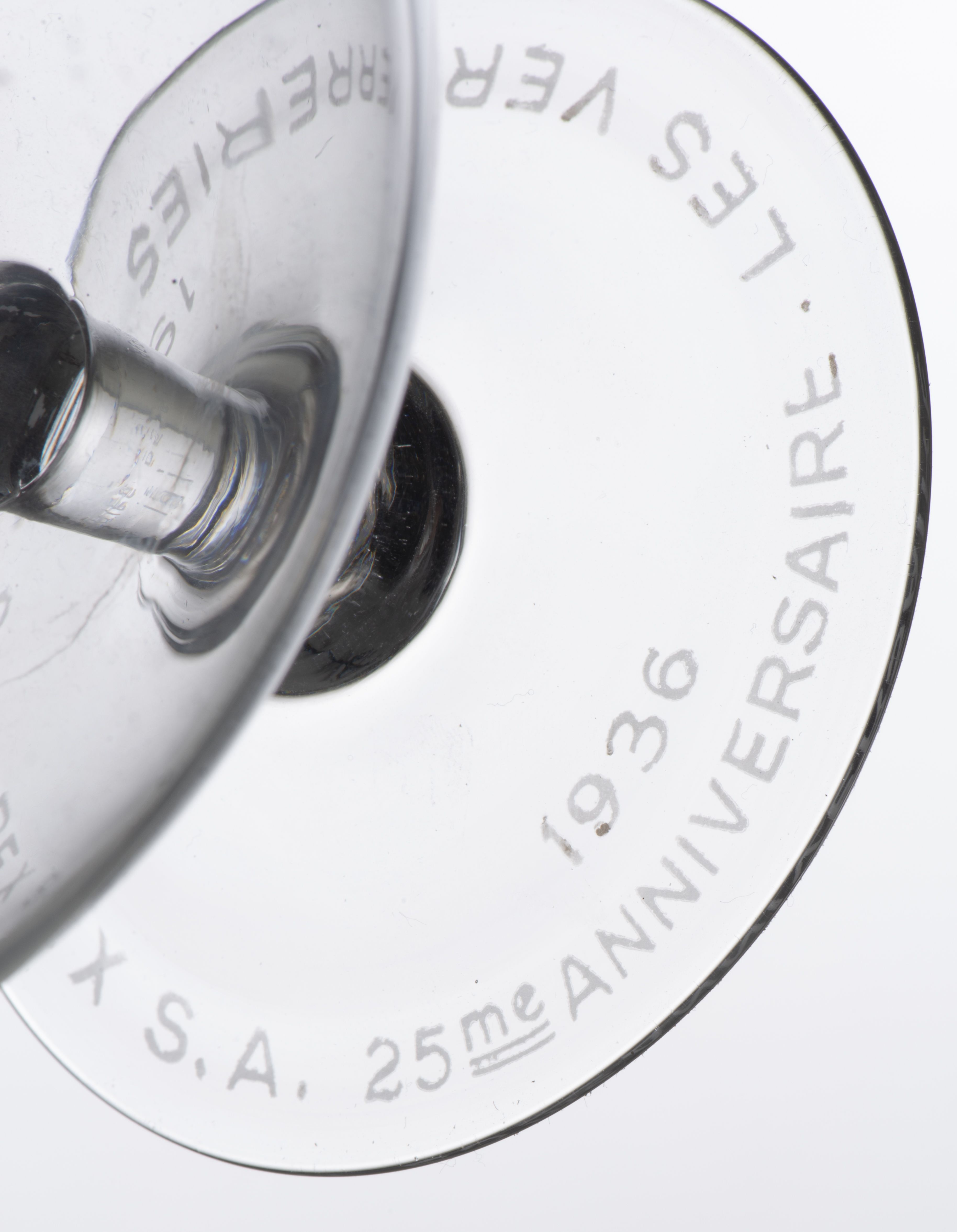 Ensemble de trois verres à cognac dont un signé Verrerie SAINT-PREX.