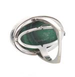 Bague sertie d'une malachite ovale des années 1970 stylisée en or gris .750 avec un V serti de 10 diamants de taille brillant pour un poids total de 0.12 ct.