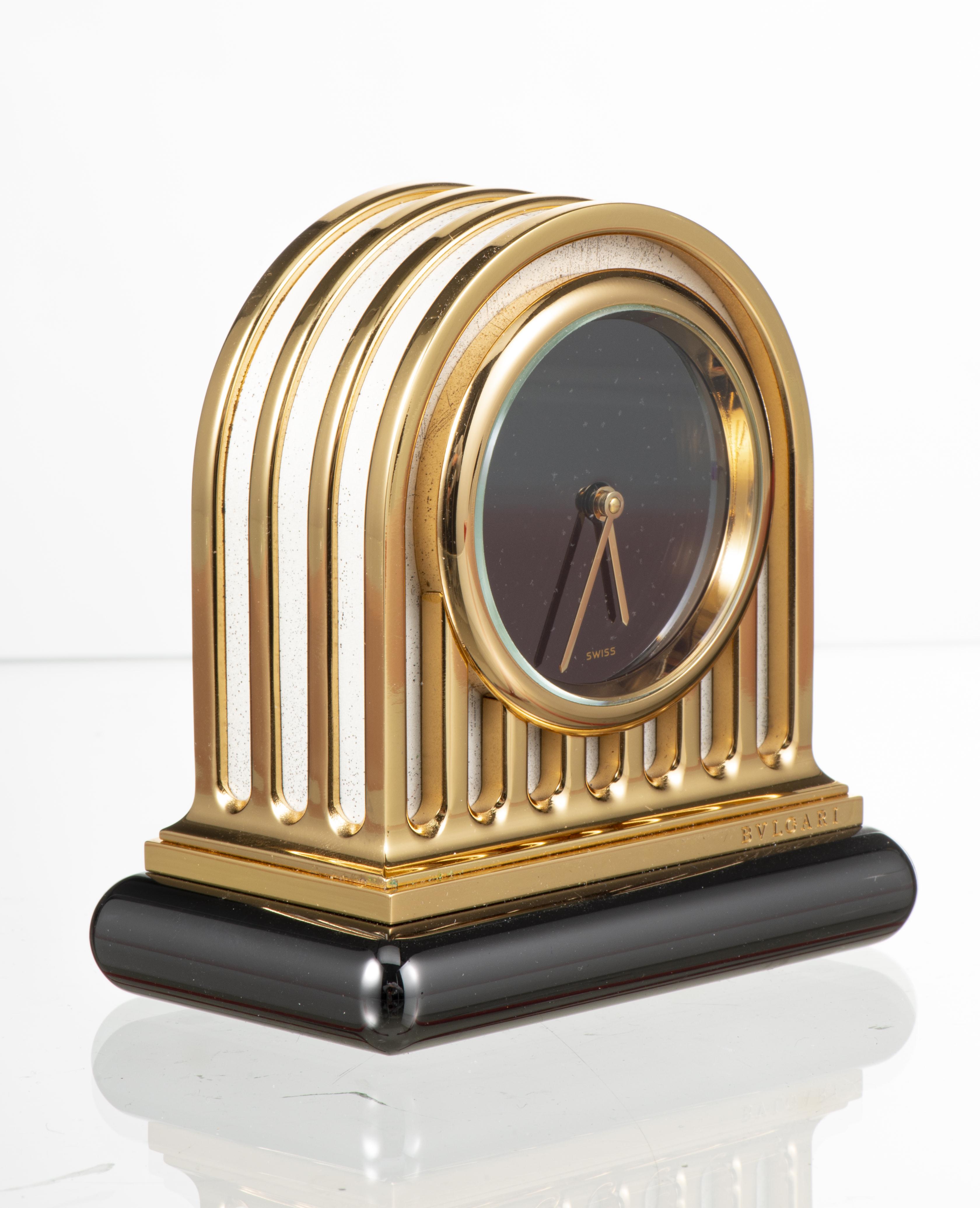 BULGARI, pendulette Duomo à quartz num. de fabrication I 45922 mouvement 1875460 en métal thermolaqué doré du 18.11.88