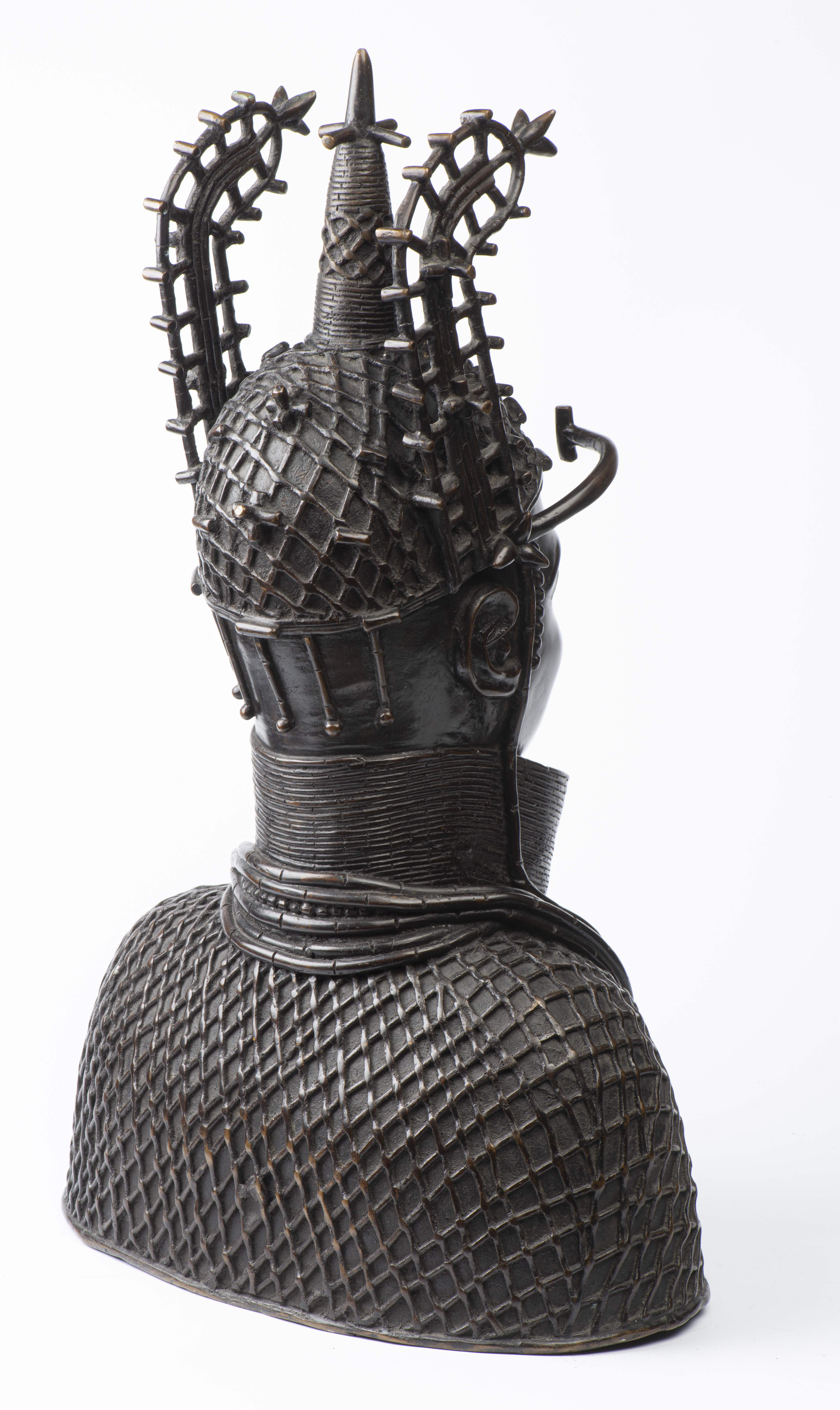 Buste de chef Ifé du Bénin en bronze rose à patine brune.