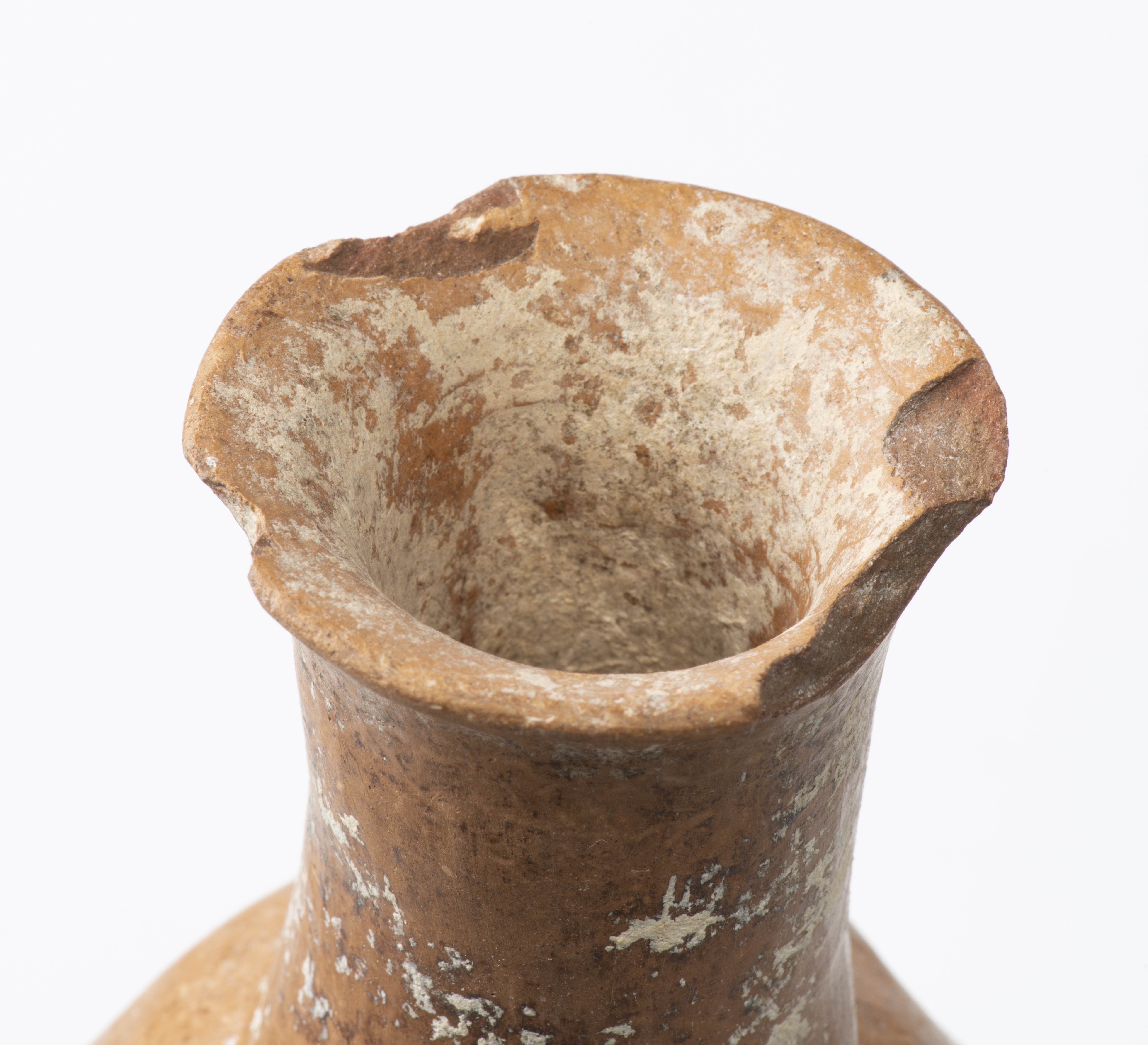 Amphore phénicienne du Liban en terre cuite rouge et petite anse au col, large panse évasée.