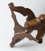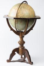 Globe terrestre en papier mâché avec la carte du globe de 1867. Structure en bois et laiton. Cartouche inscrit: LA TERRE d'après les plus nouvelles découvertes NUREMBERG INSTITUT ARTISTIQUE DE C. Abel Klinger Editeur. Pied central terminé par 3 patins et entretoise en Y.