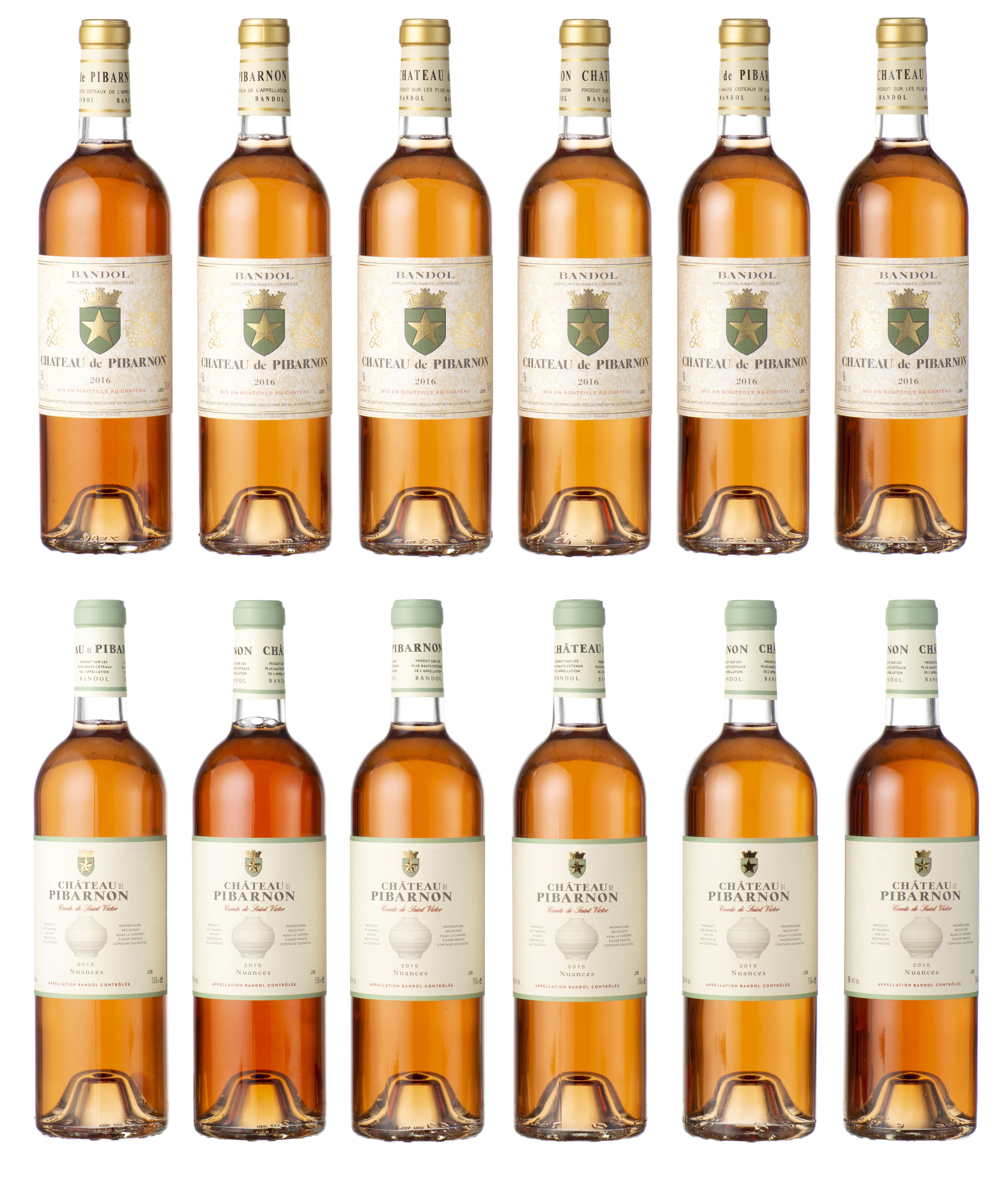 Bandol, Château de Pibarnon, Comte de Saint Victor, rosé, 6 bouteilles de Nuances 2015 et 6 de rosé 2016
