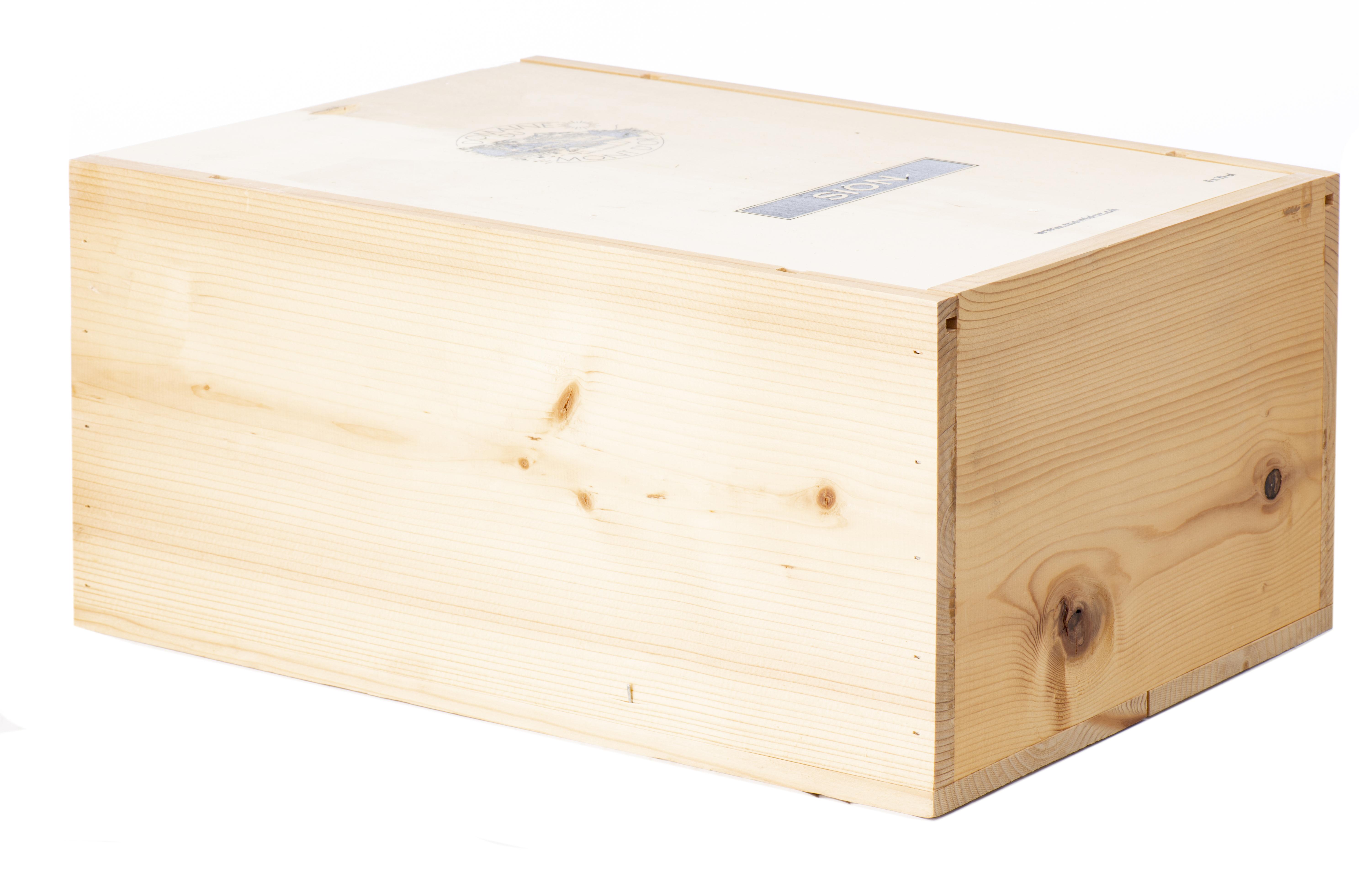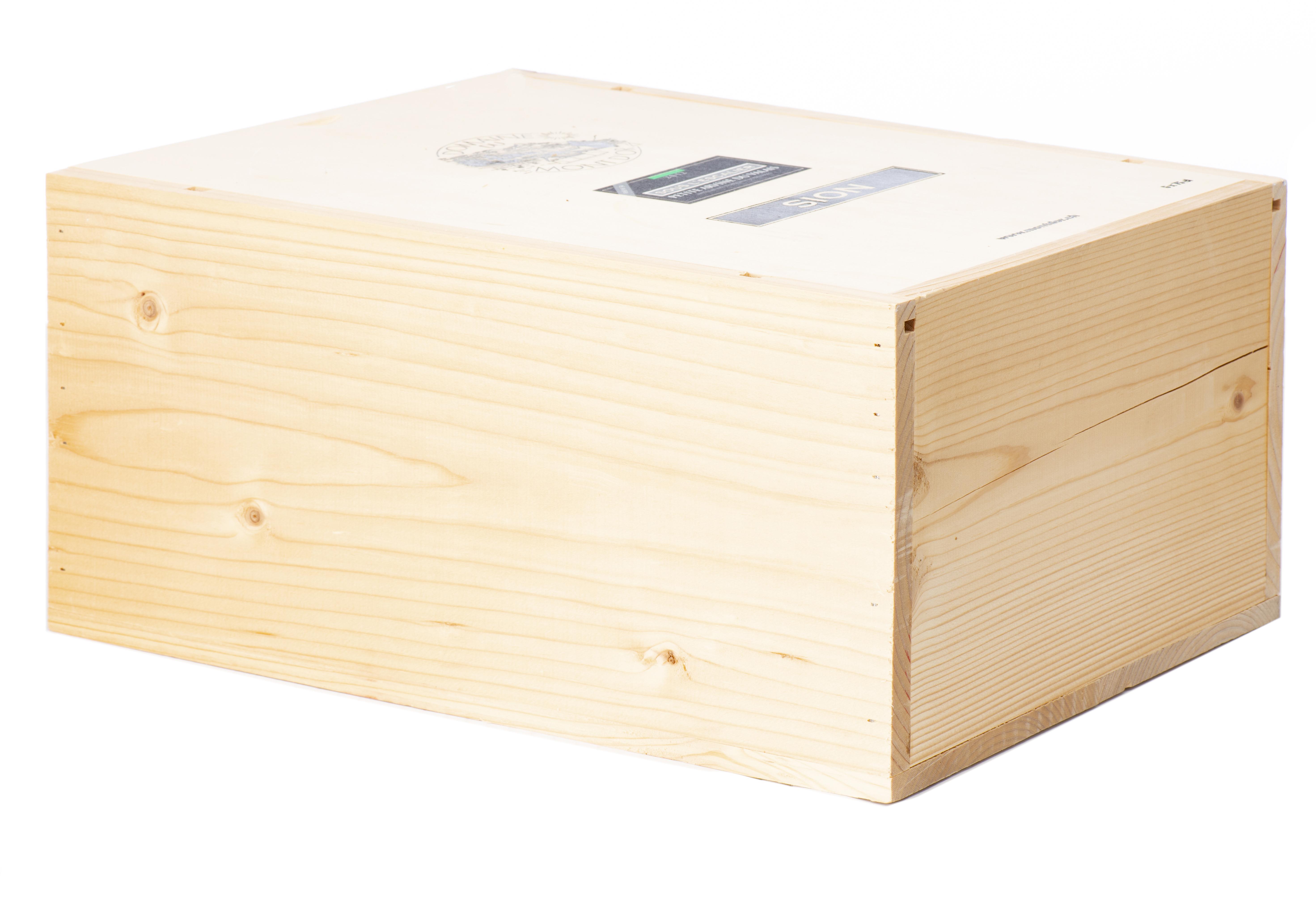 12 bouteilles de 75 cl, 2 caisses en bois.