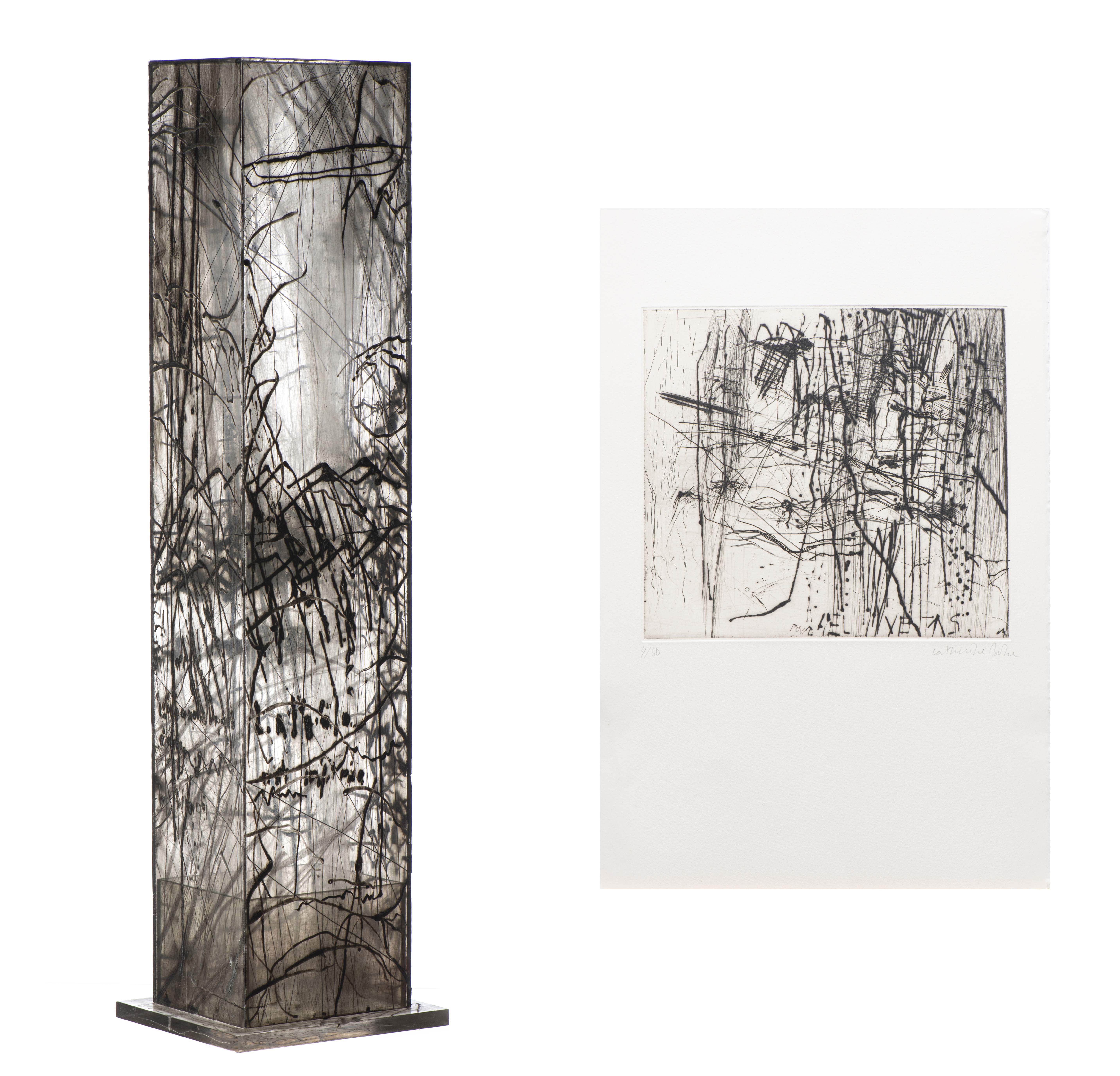 Catherine BOLLE (1956), ensemble composé d'une stèle en plexiglas et d'une pointe sèche