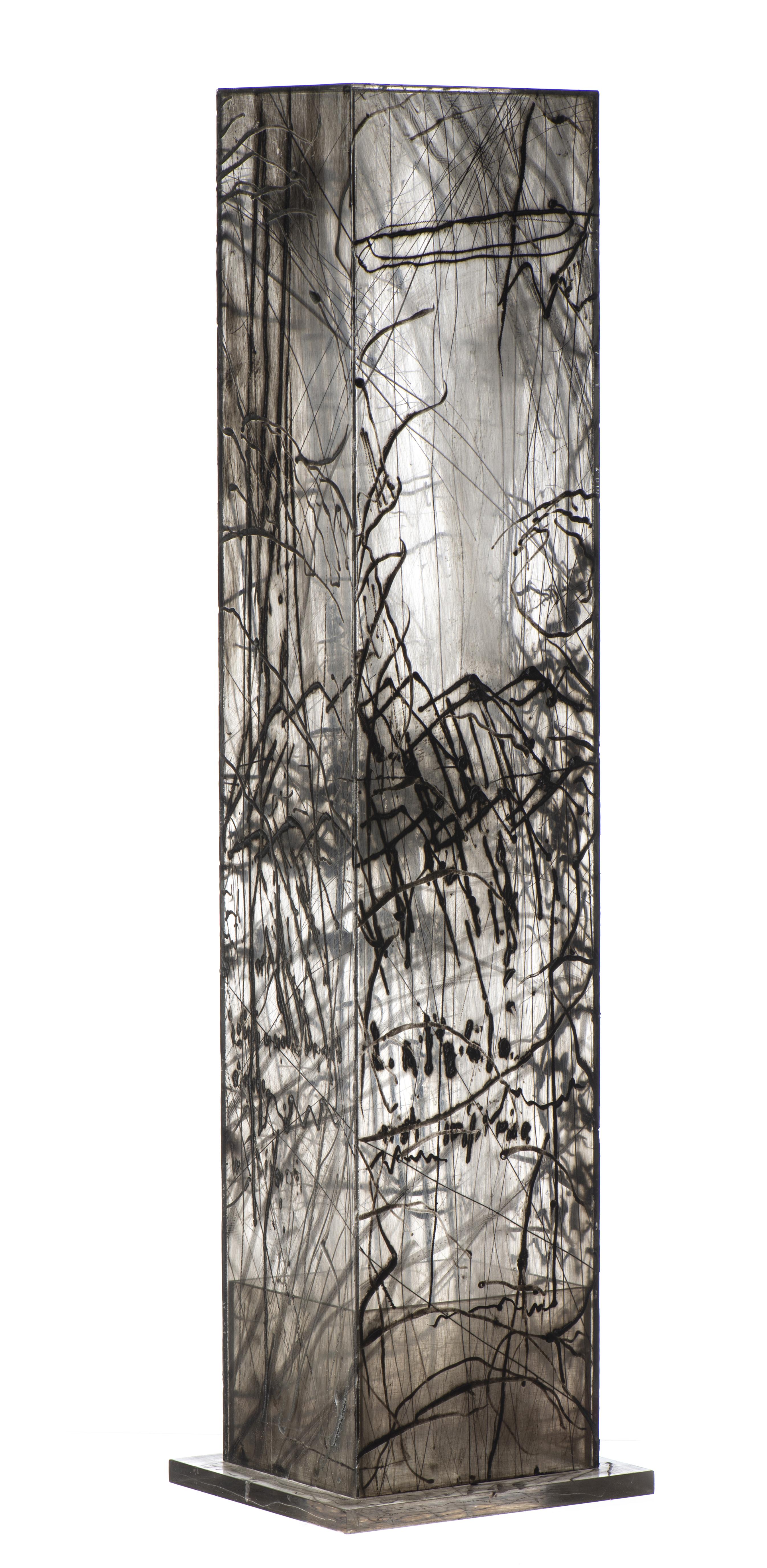 Catherine BOLLE (1956), "Stèle gravée", 1995, technique mixte sur plexiglas.