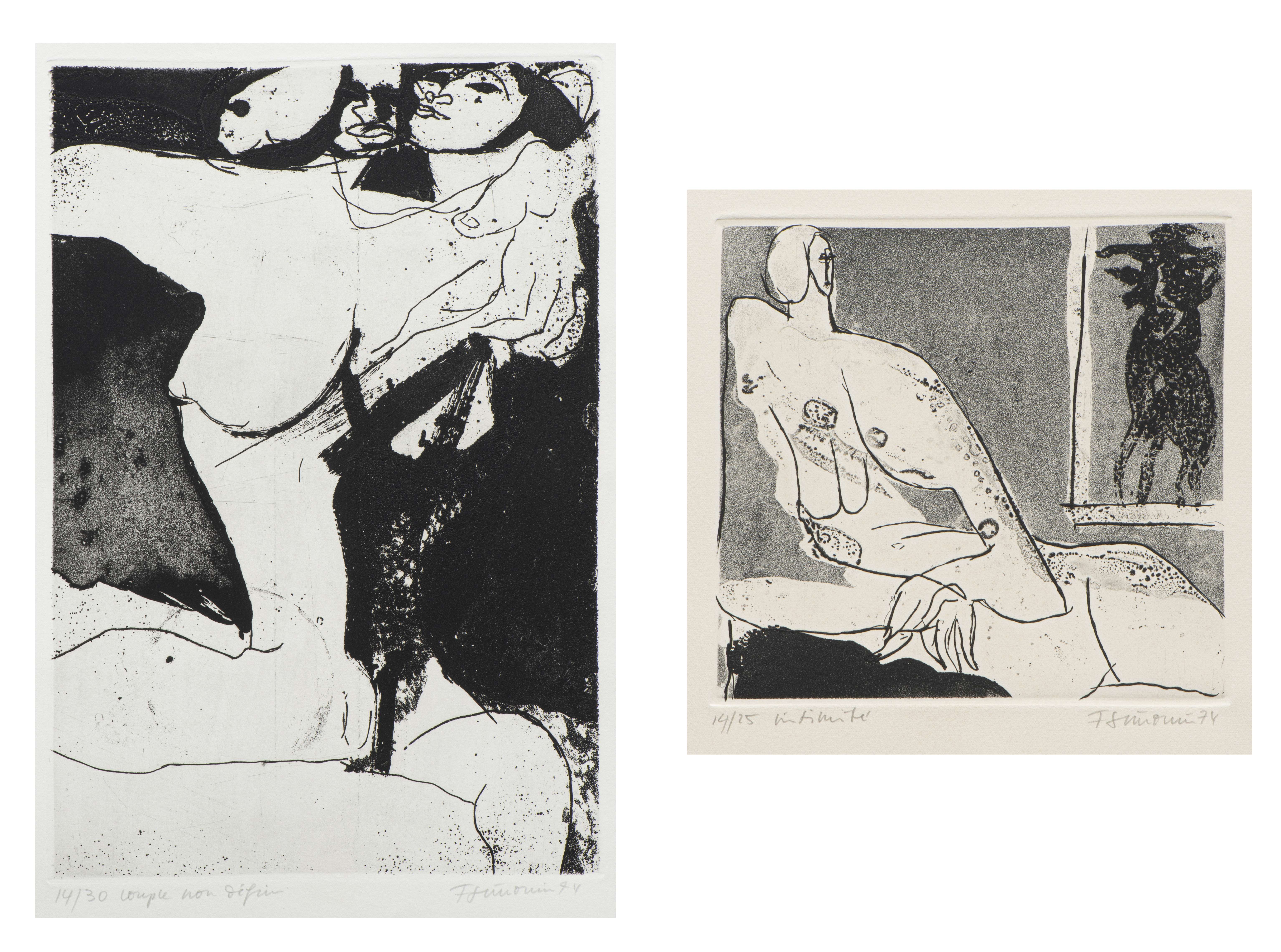 Francine SIMONIN (1936-2020), "Couple non défini", gravure en taille-douce, numéroté 14/30, daté 1974 et signé en bas à droite au crayon.