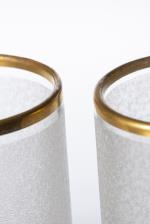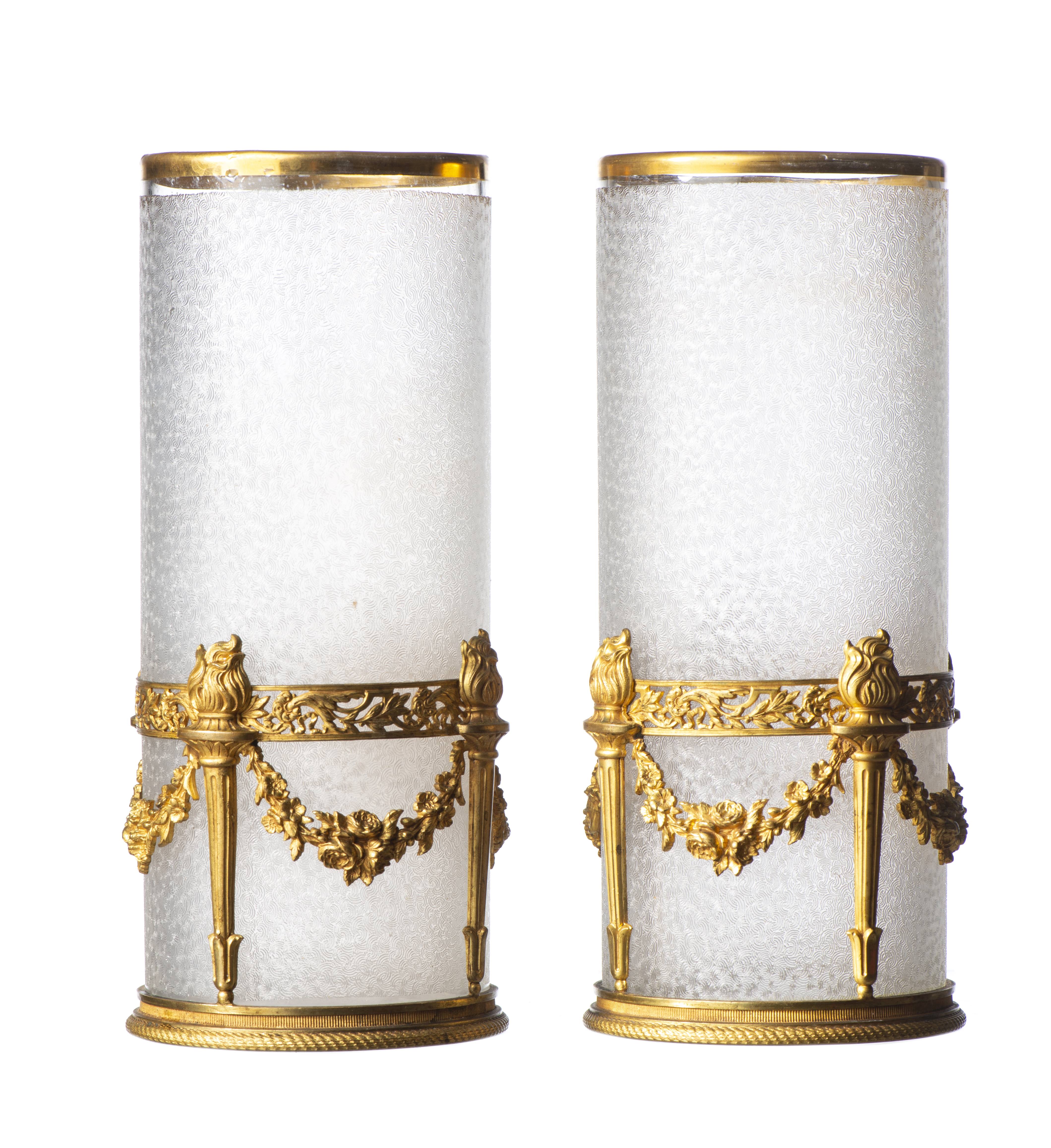Cristal de Lorraine, paire de vases tubulaires de style Napoléon III en métal doré et cristal.