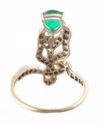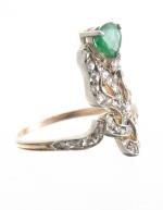 Bague ancienne en or jaune et argent pavée de diamants et émeraude