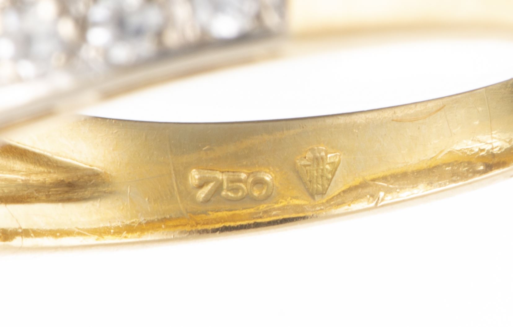 Bague en or jaune .750 avec un pavage de 30 diamants 8/8 sertis à griffes en demi-jonc pour un total de 0.90 ct.