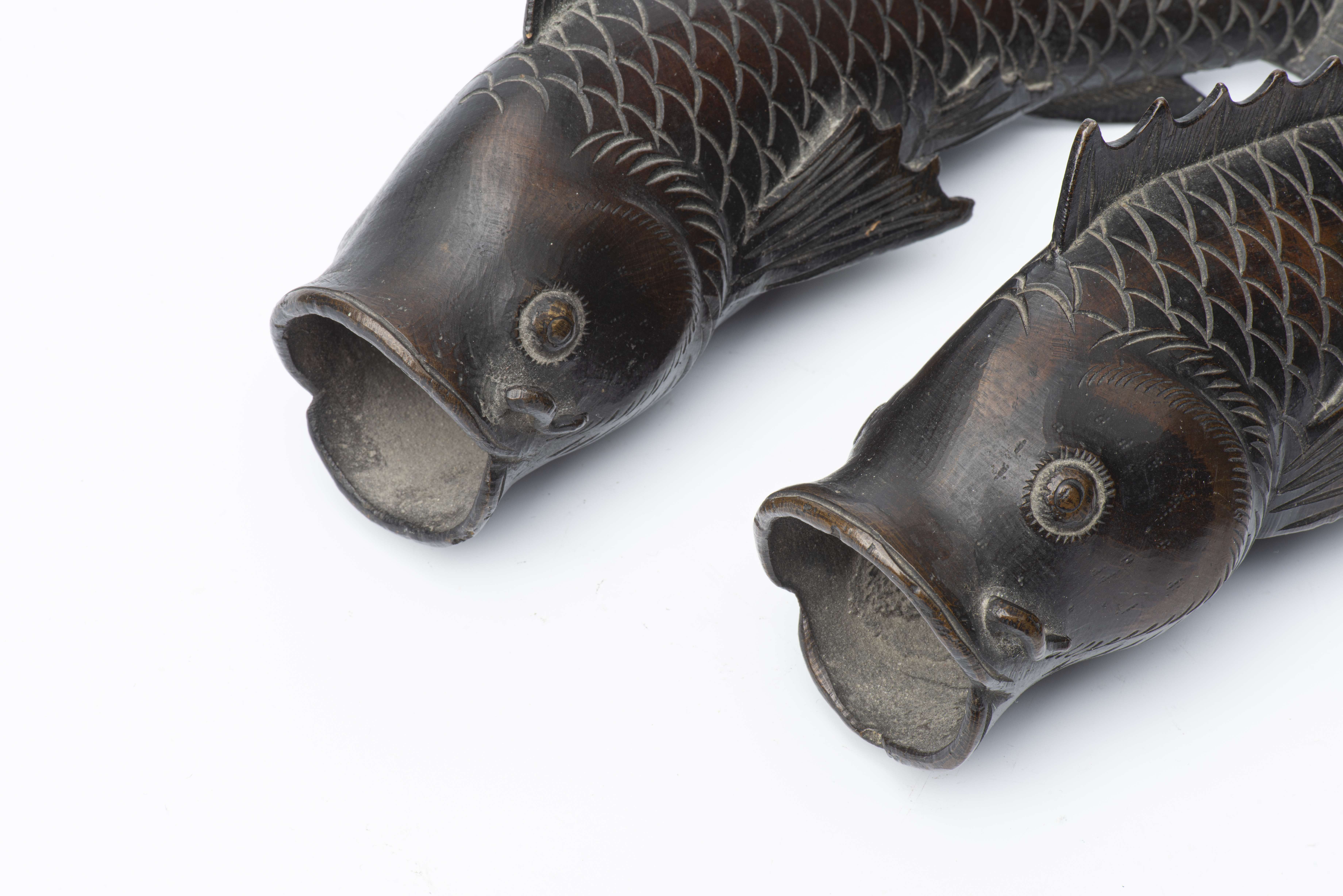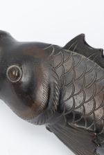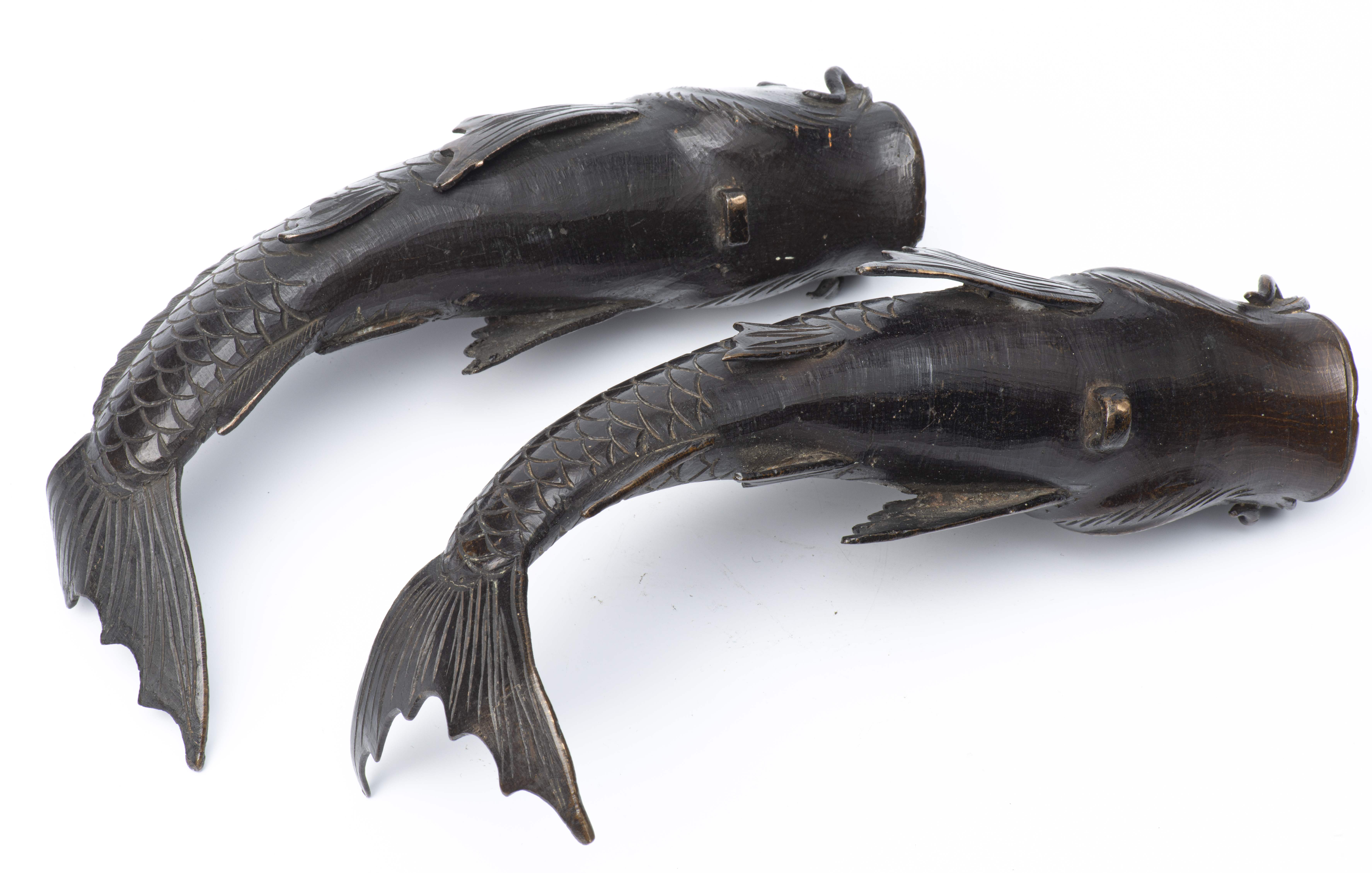JAPON, Paire de carpes en bronze du Japon avec attaches pour servir de vases muraux