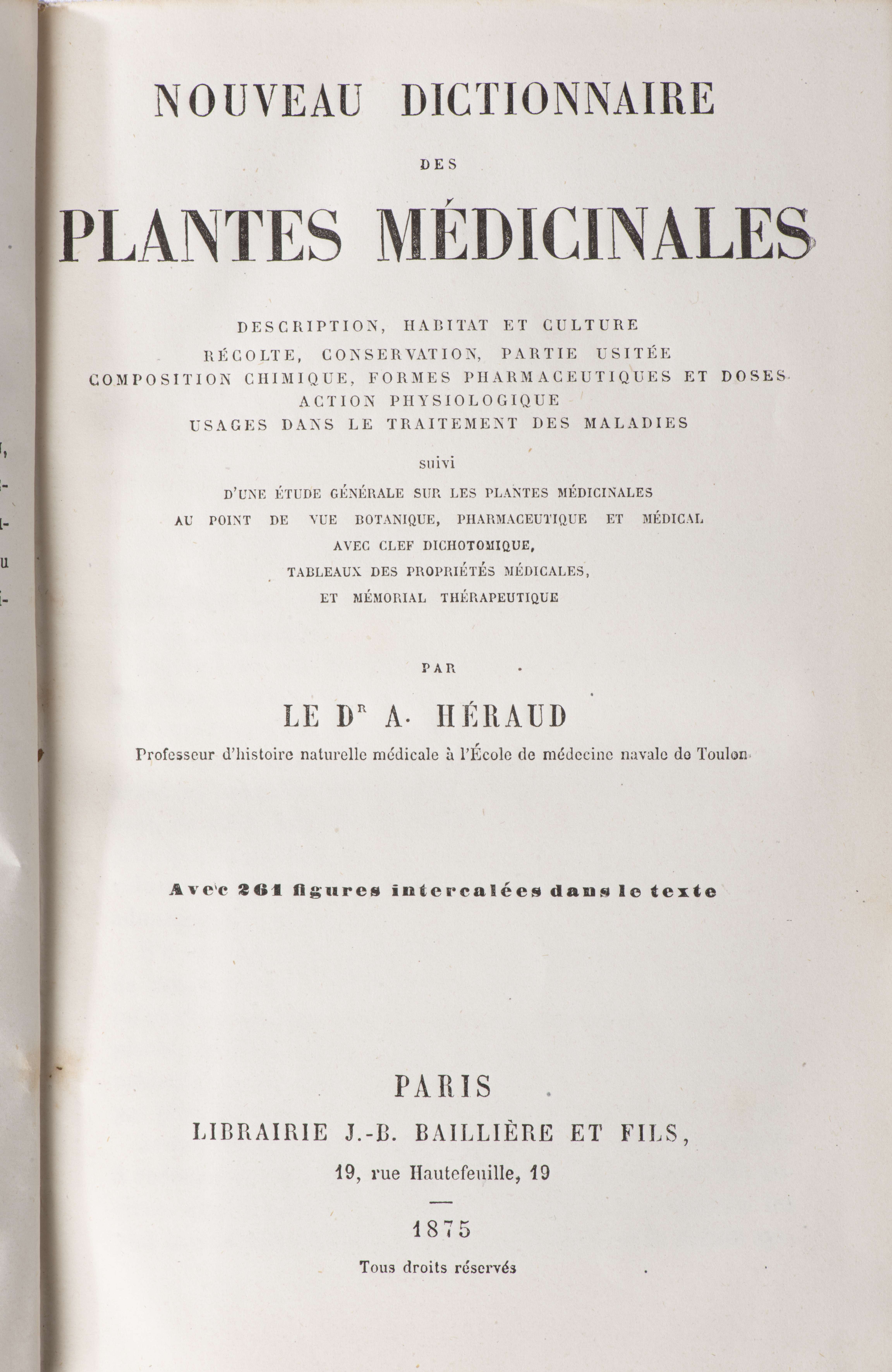 - Dr A. Héraud, Nouveau dictionnaire des Plantes médicinales 1875, In-8 couverture d'éditeur en percaline verte.