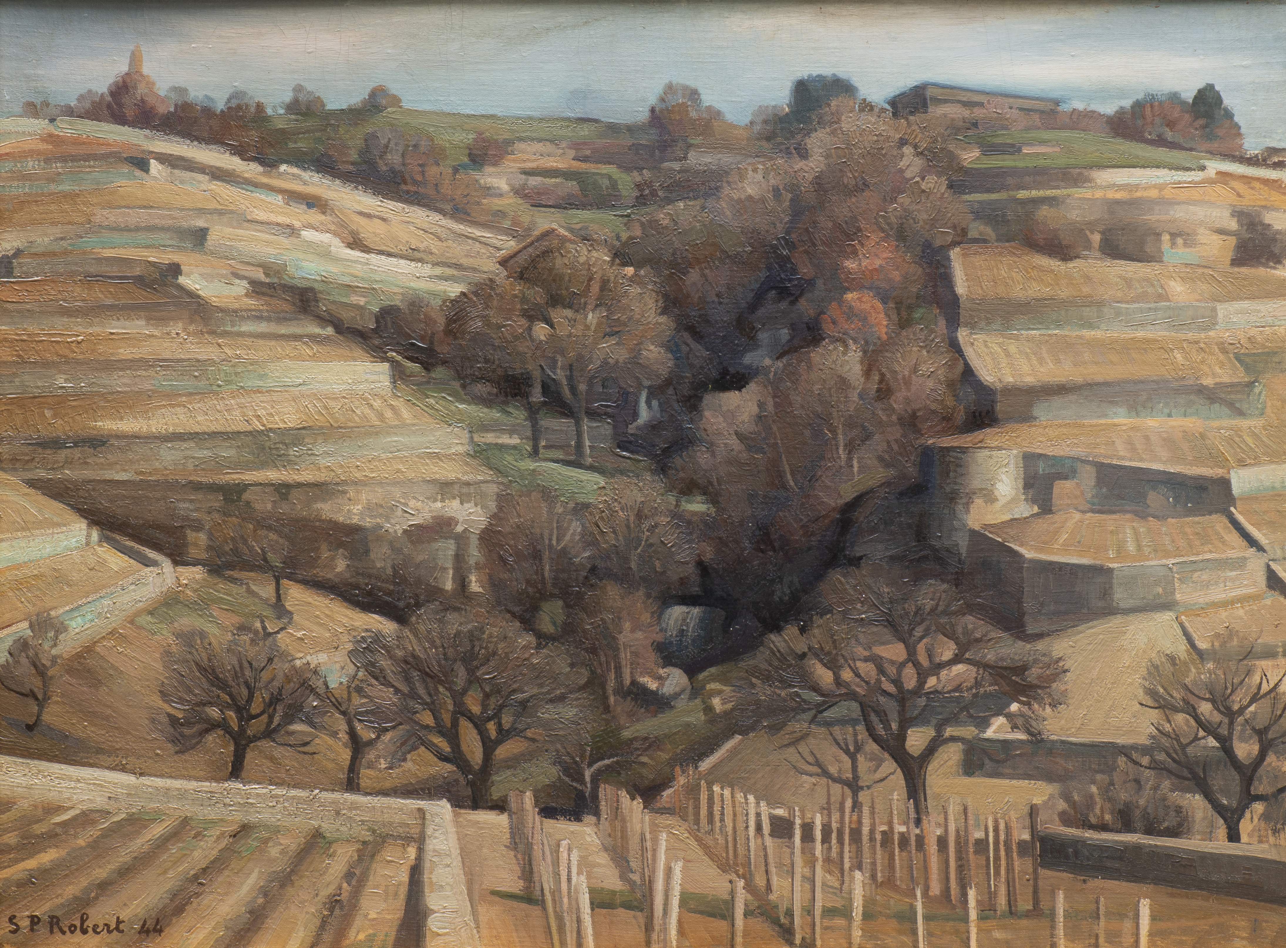 Steven Paul ROBERT (1896-1985), 'Les vignoble à Rivaz', Huile sur panneau