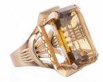 Bague en or rose .585 avec une citrine de taille émeraude de env. 30 cts .