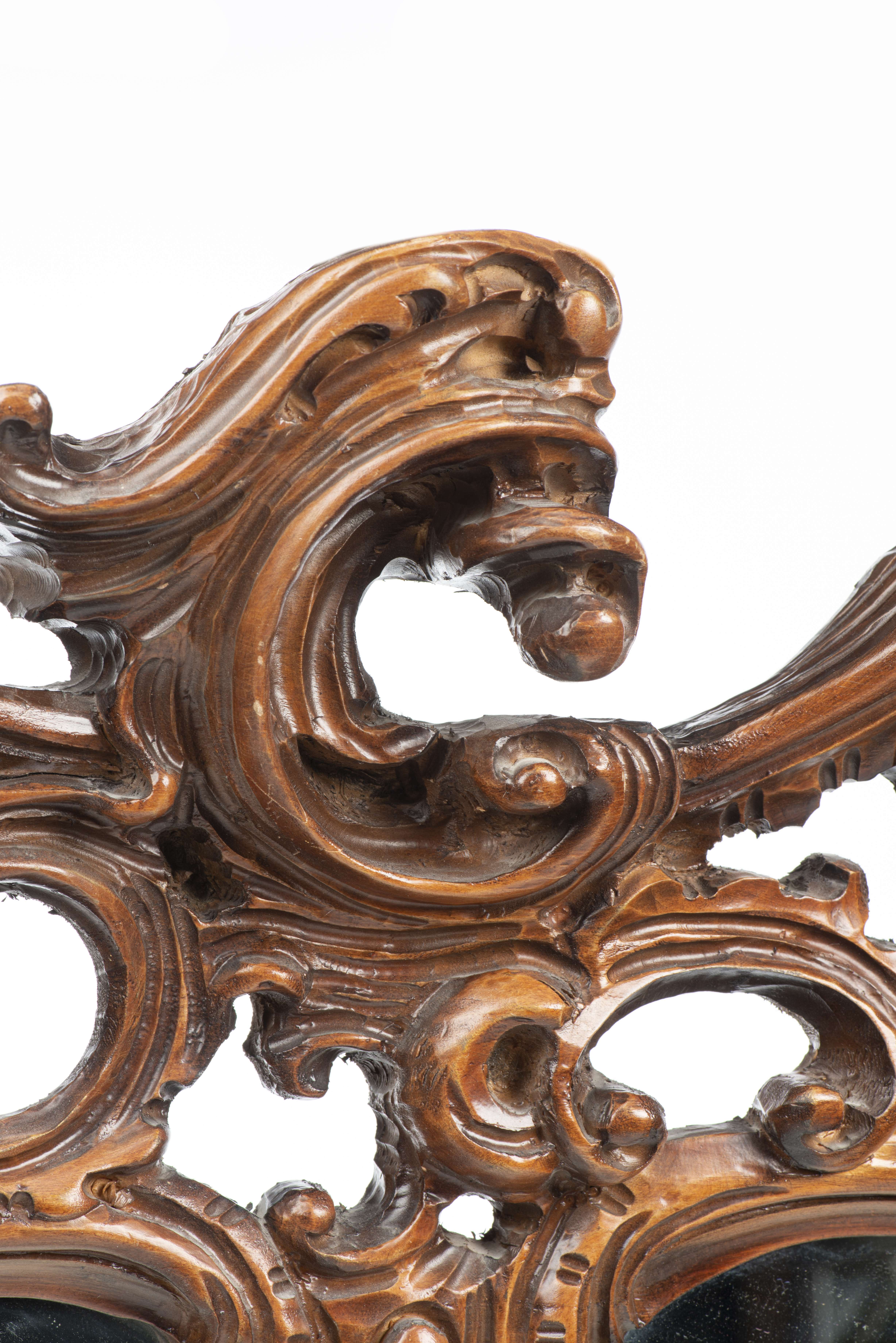 Travail début XXe, Miroir de style Rocaille en bois massif