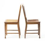 Travail Art nouveau, circa 1925, Paire de chaises en bois massif à dossier et assise en paillage