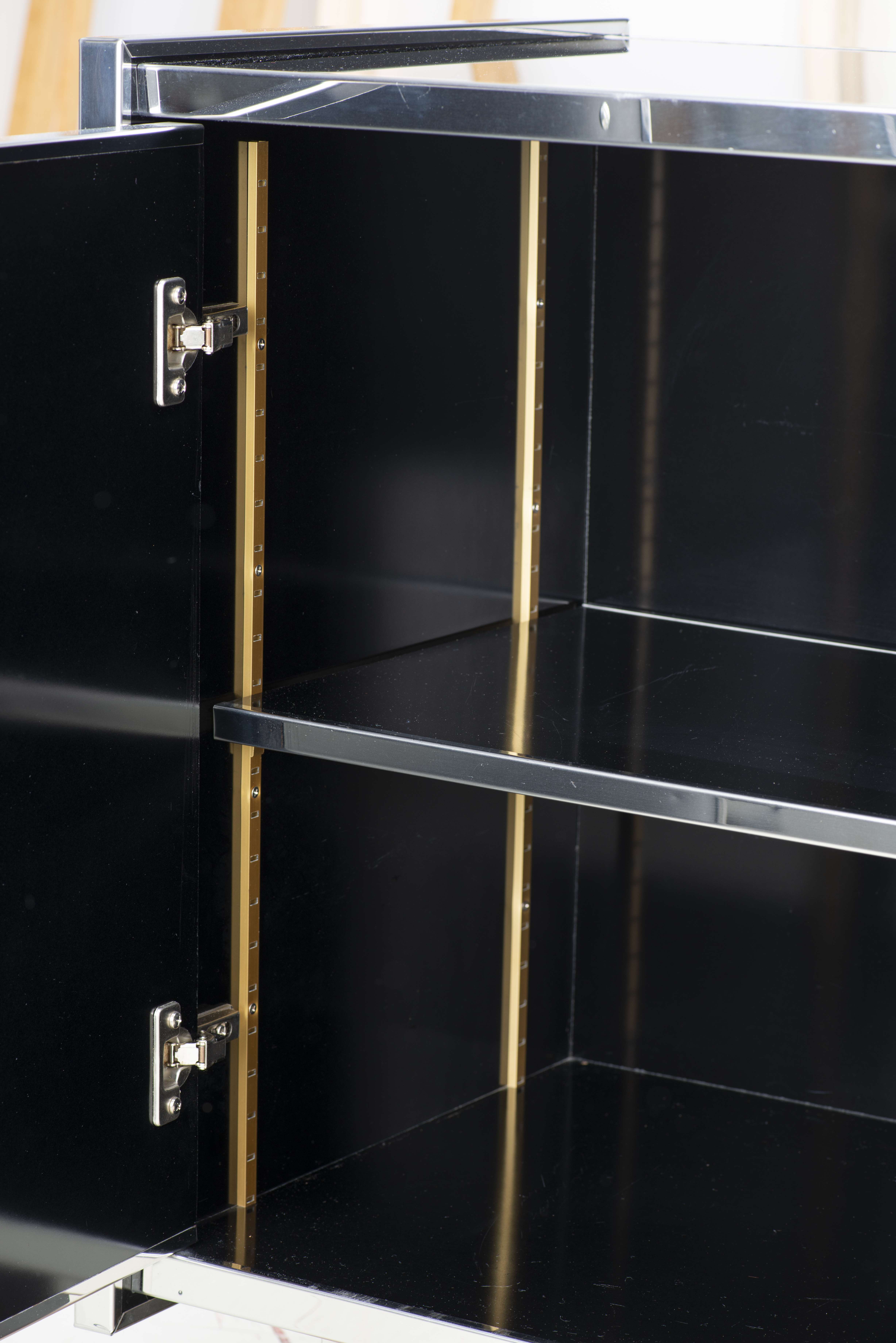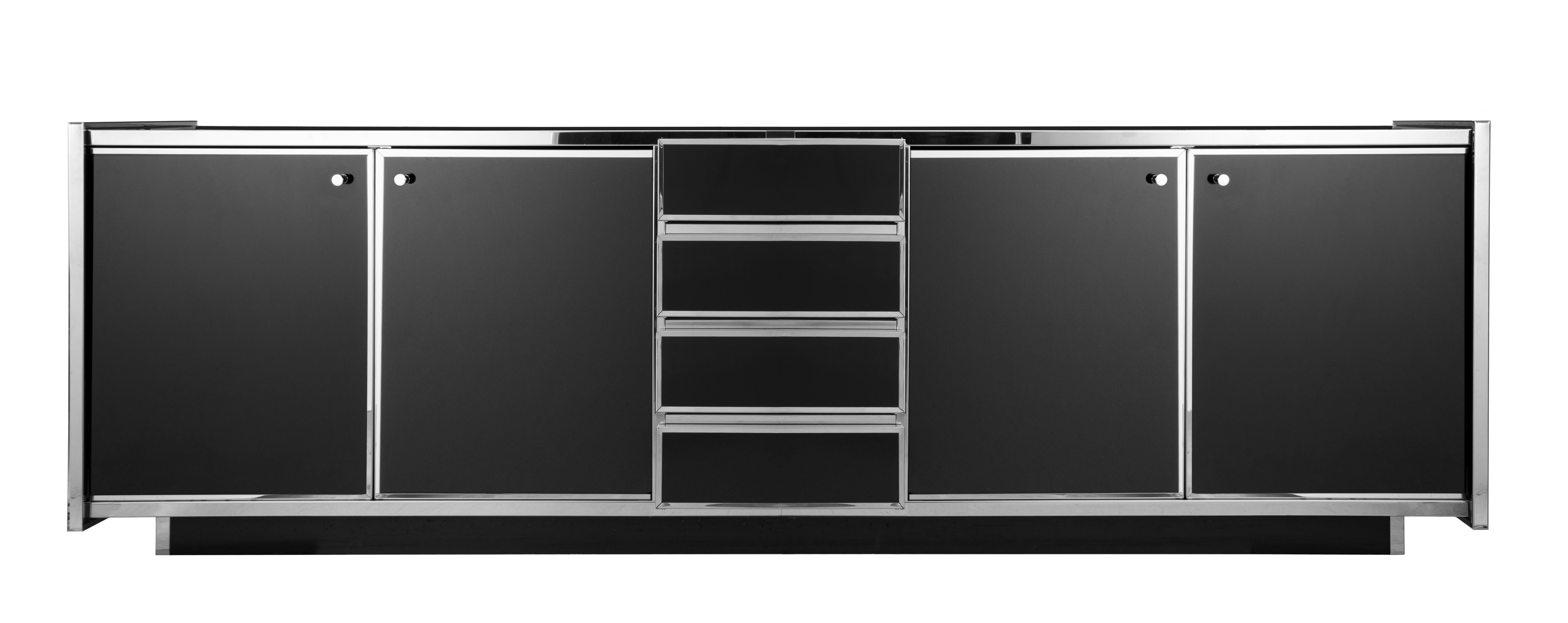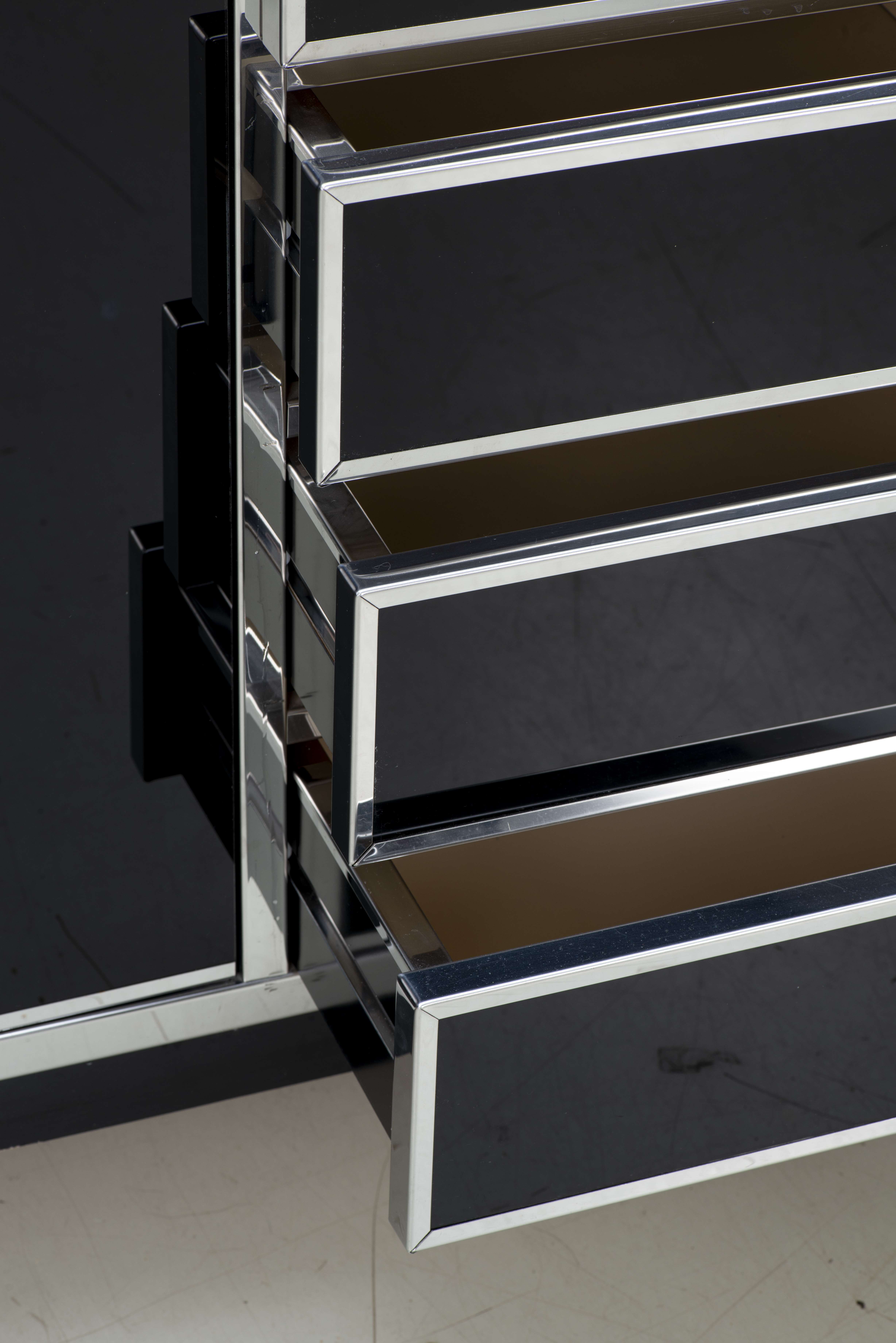Willy Rizzo, dand le goût de, Grande enfilade en verre fumé de couleur noire et chrome.