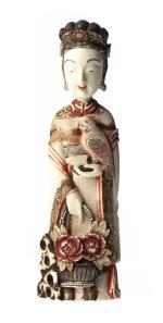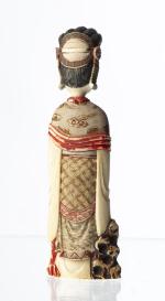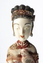 CHINE, Statue en ivoire teinté représentant une jeune femme