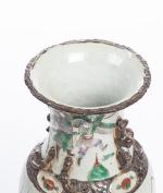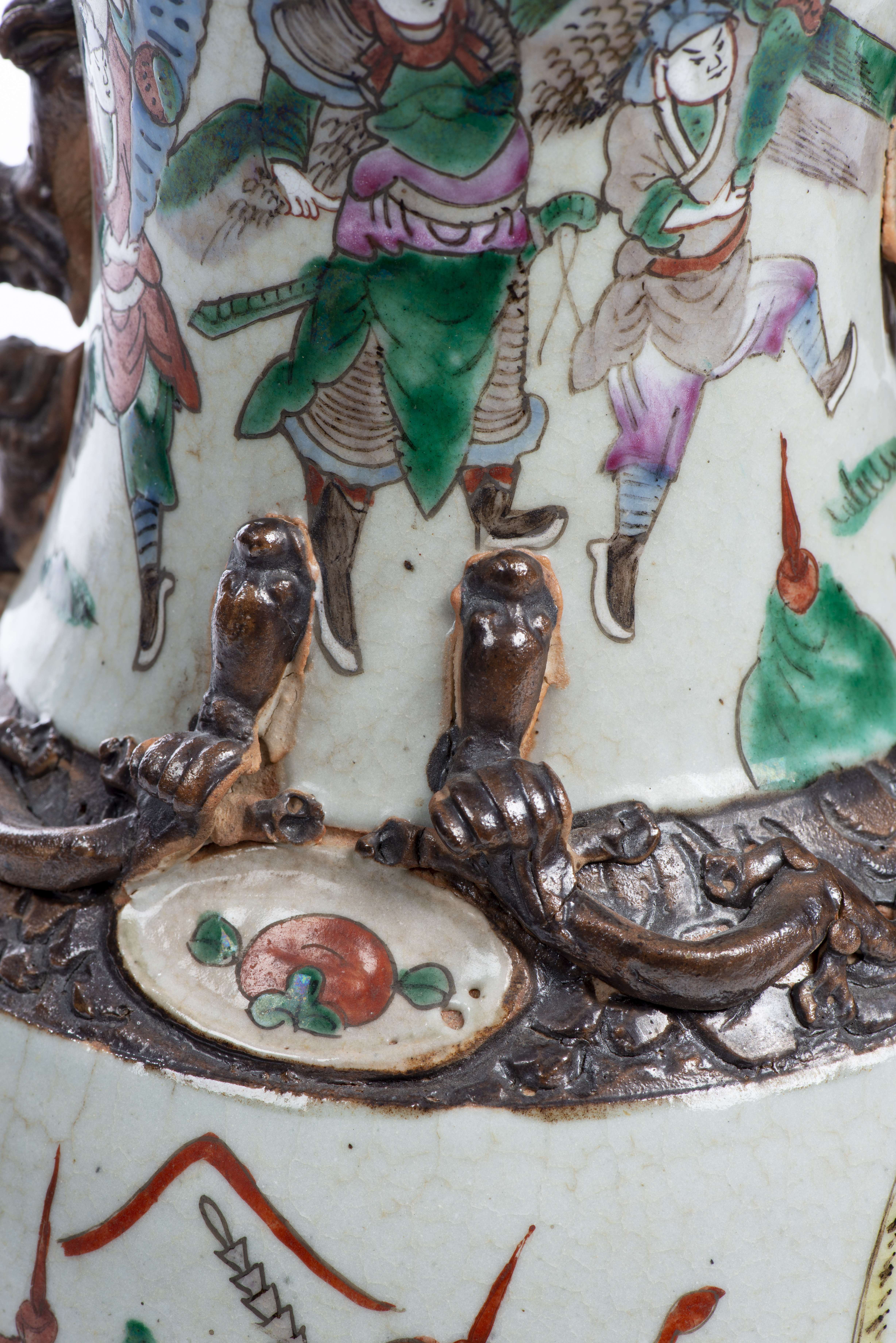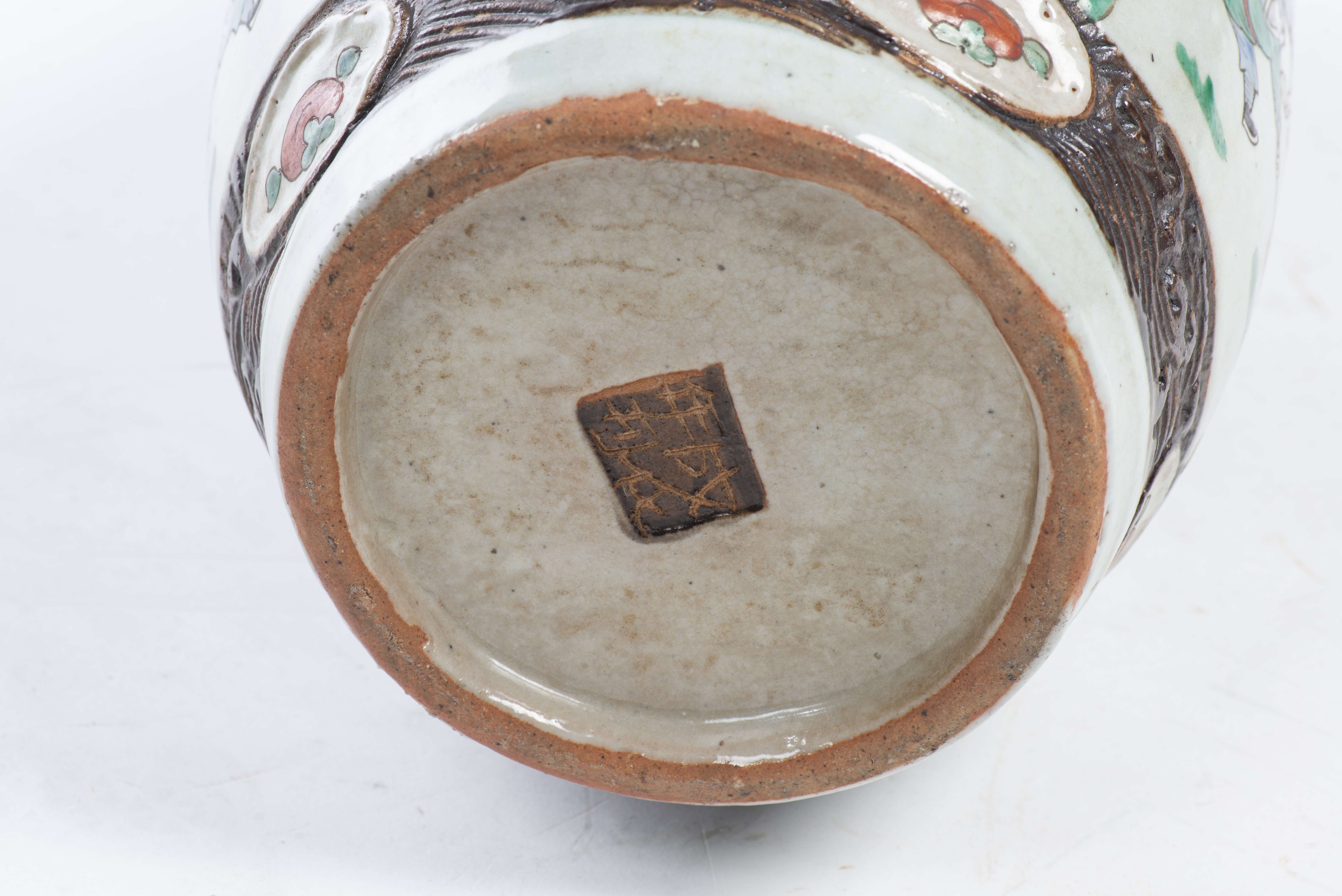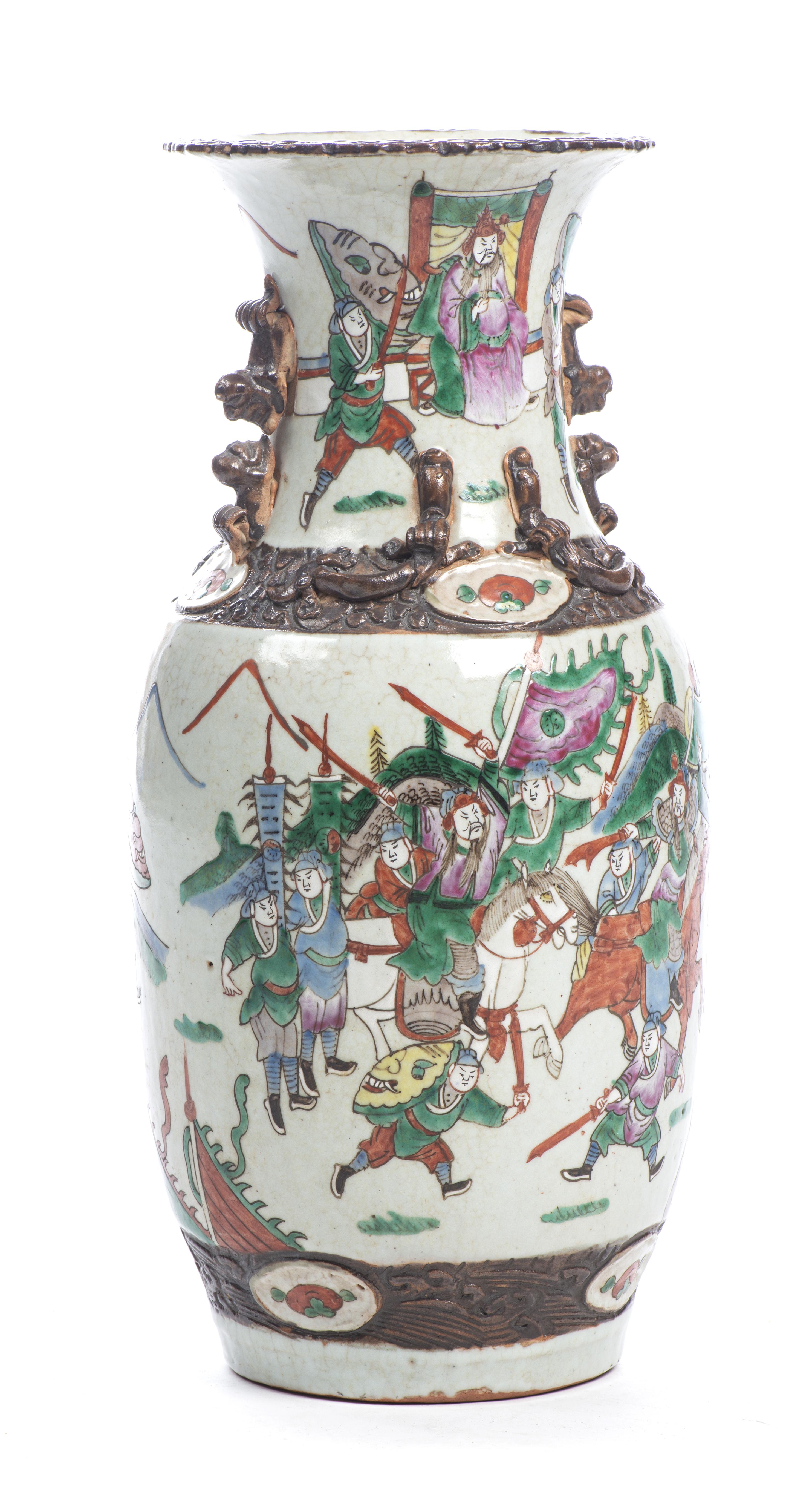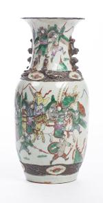 CHINE, Vase de Nankin à décor de personnages représentant la préparation d'une offensive militaire.