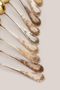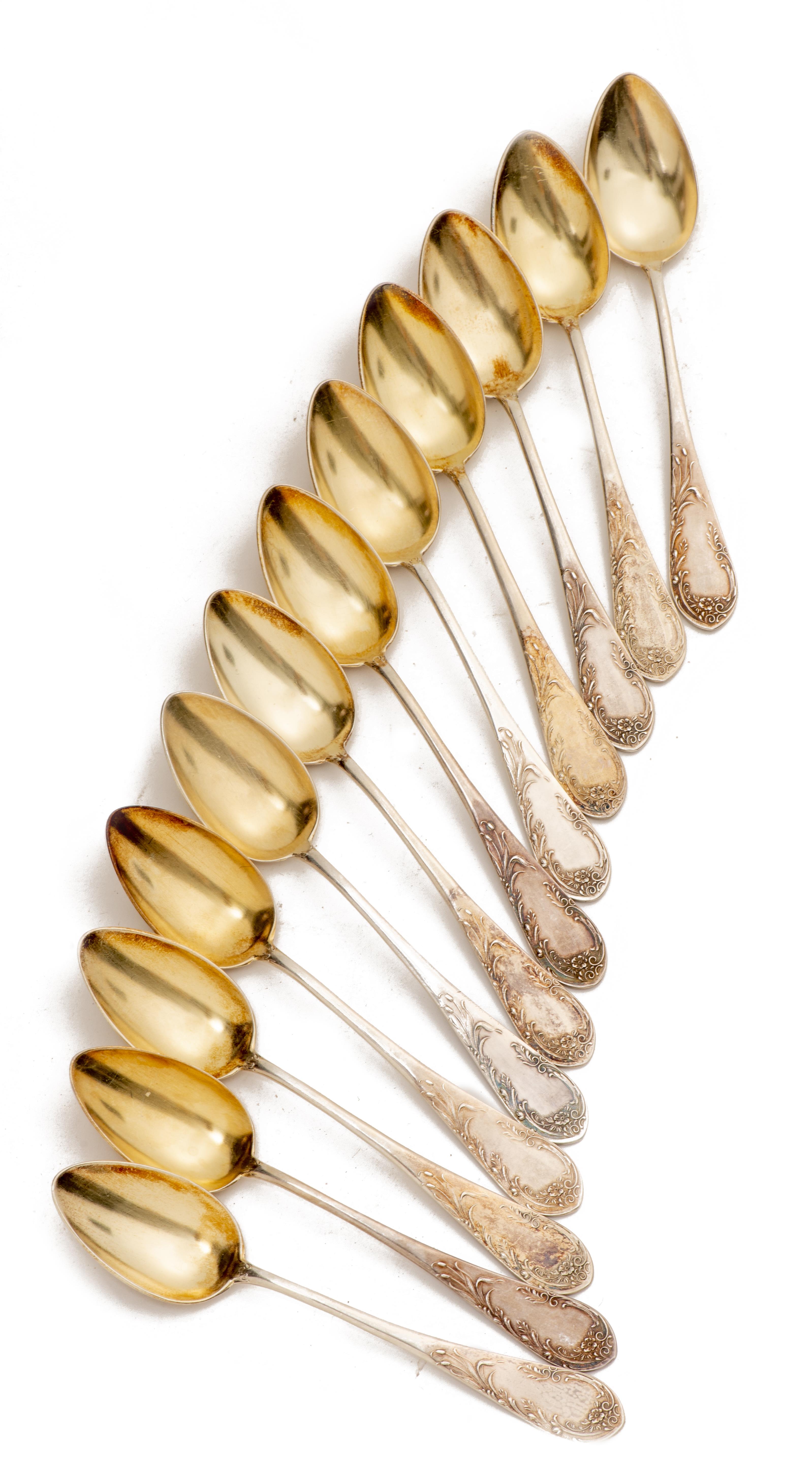 12 cuillères à moka en argent .800 Jezler, modèle Schilf à cuilleron vermeil.