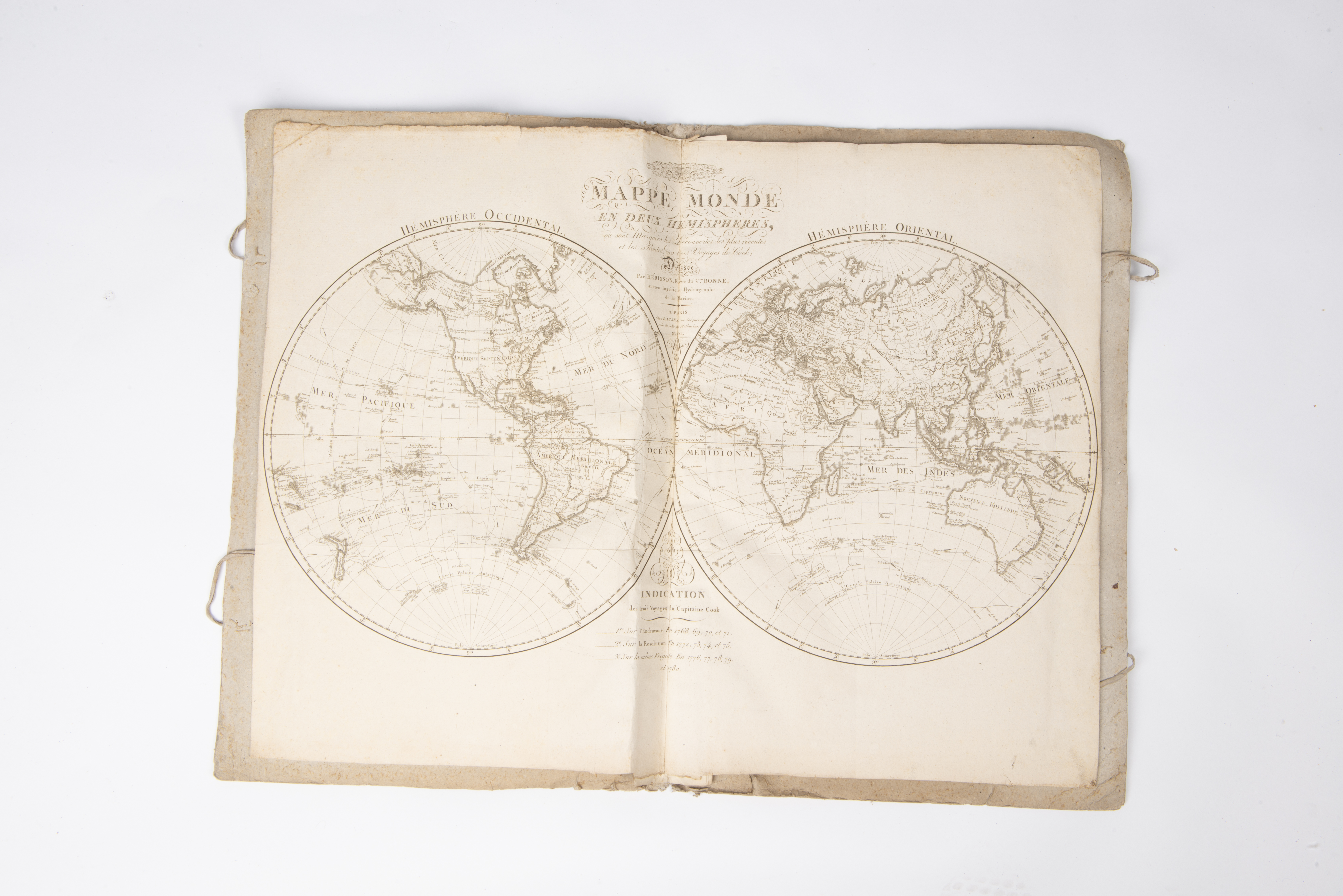 Lot de cartes diverses dans une chemise XVIIIe, annoté "Atlas ancien avec plusieurs cartes latines et allemandes".