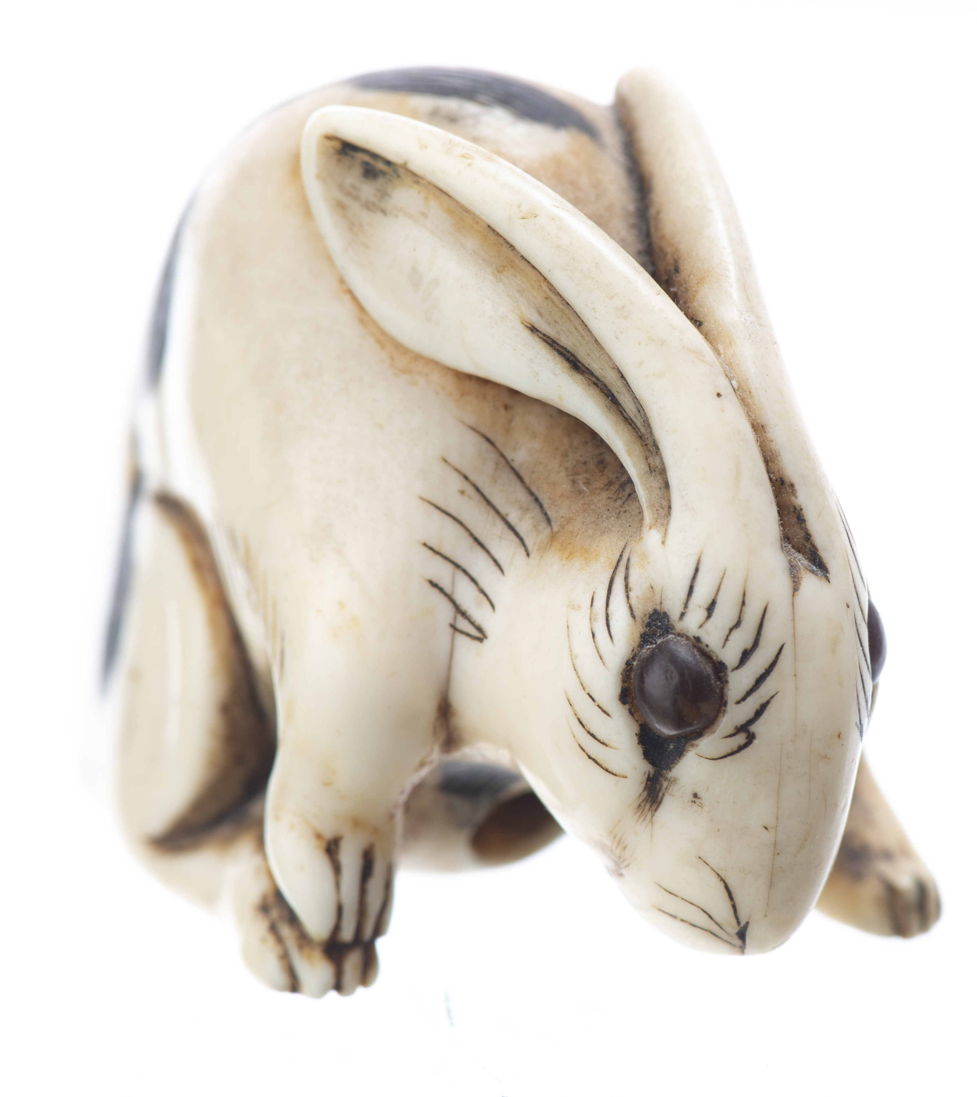 JAPON - XXe - Netsuke en ivoire sculpté représentant un lapin