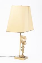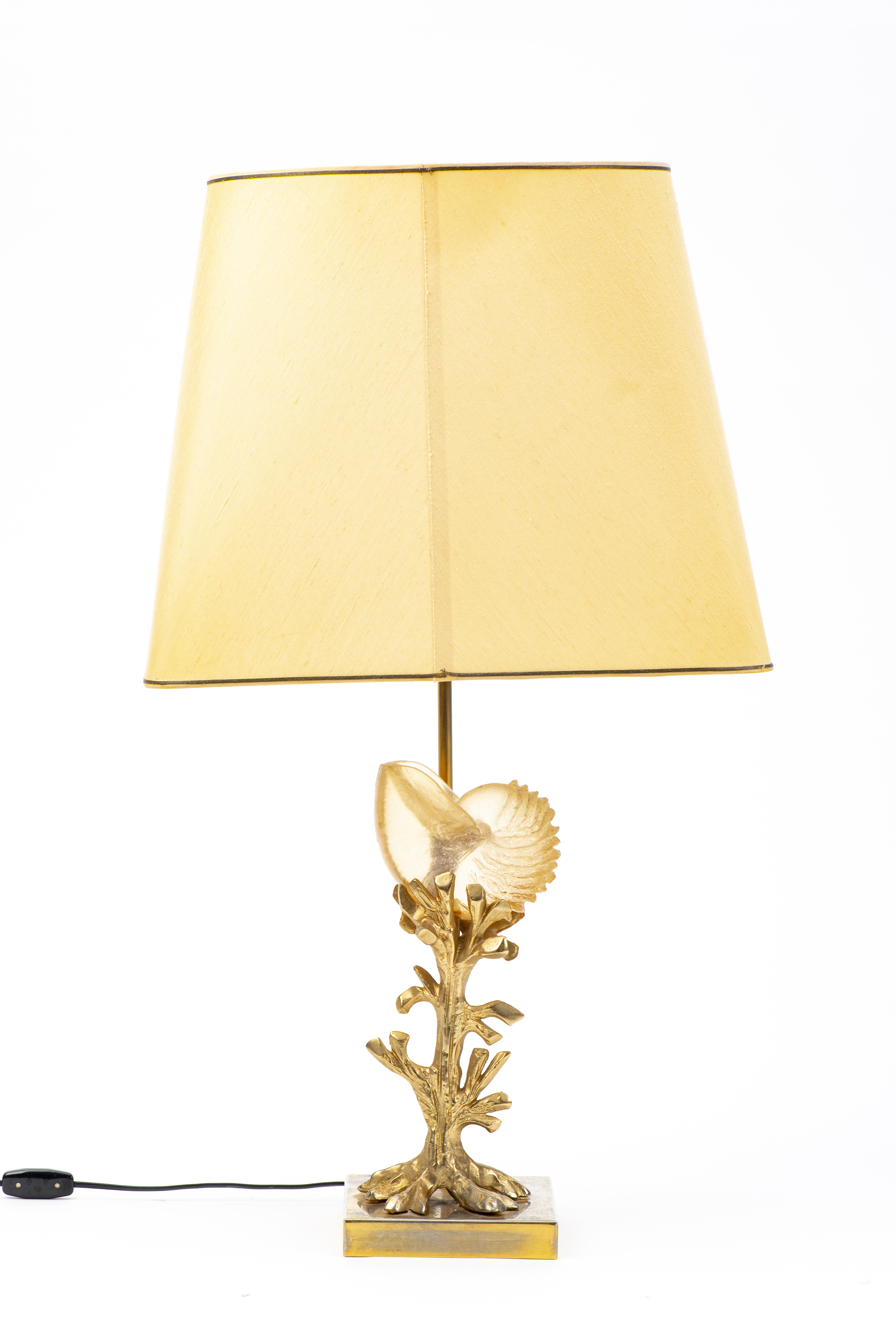 MAISON CHARLES - Lampe de table à structure en bronze doré surmontée d'un nautile en résine