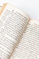 In-12, 1 vol., reliure d'époque en cuir maroquin rouge, dos à nerfs orné de fleurs de lys, étoiles et filets frapés or, triple filet et armoiries or sur les plats de Anne de Bavière, Princesse de Bourbon-Condé, doré sur les trois tranches.