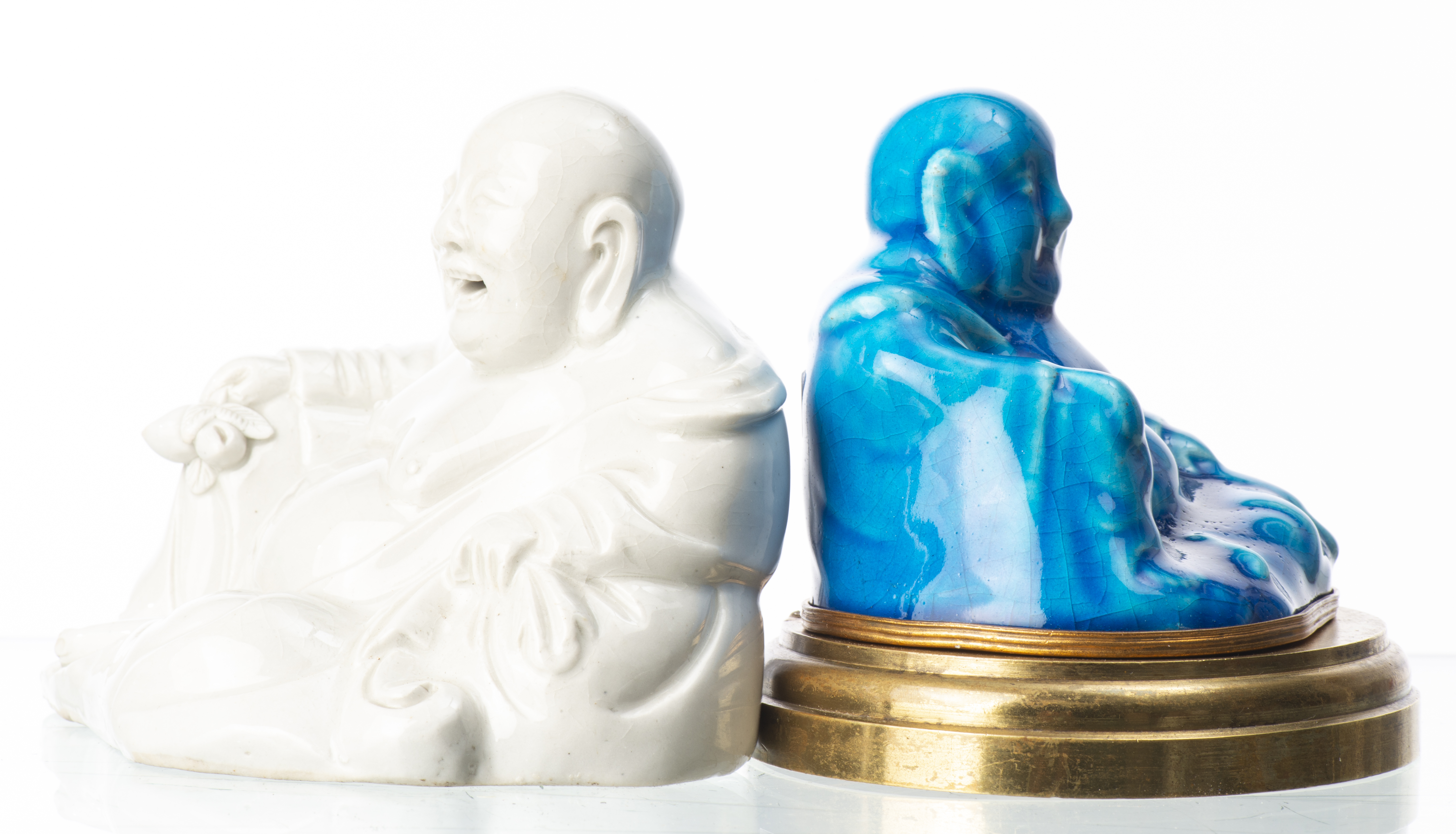 CHINE - Deux Budai (布袋) ou bouddha rieurs en porcelaine de Chine,