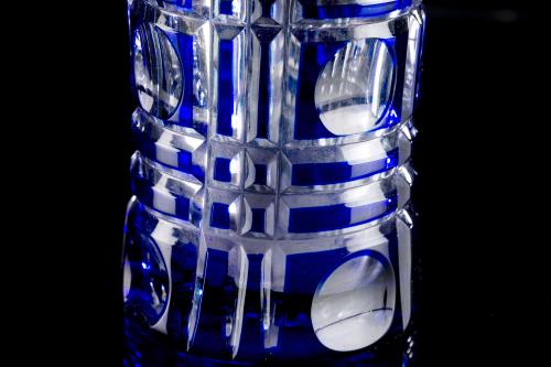 1 vase conique en cristal bleu et translucide