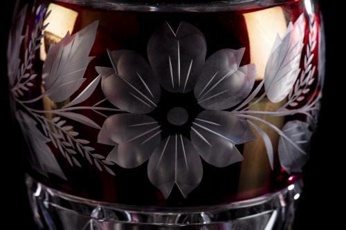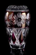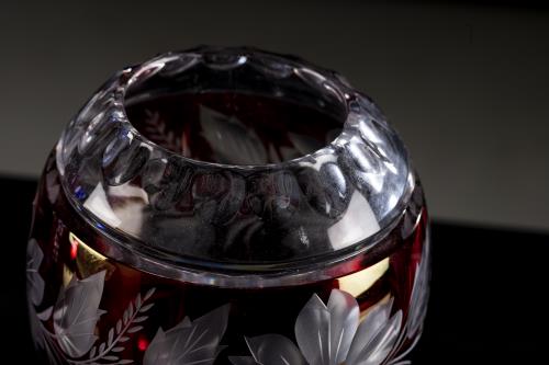 1 vase boule en cristal bicolore rouge et translucide