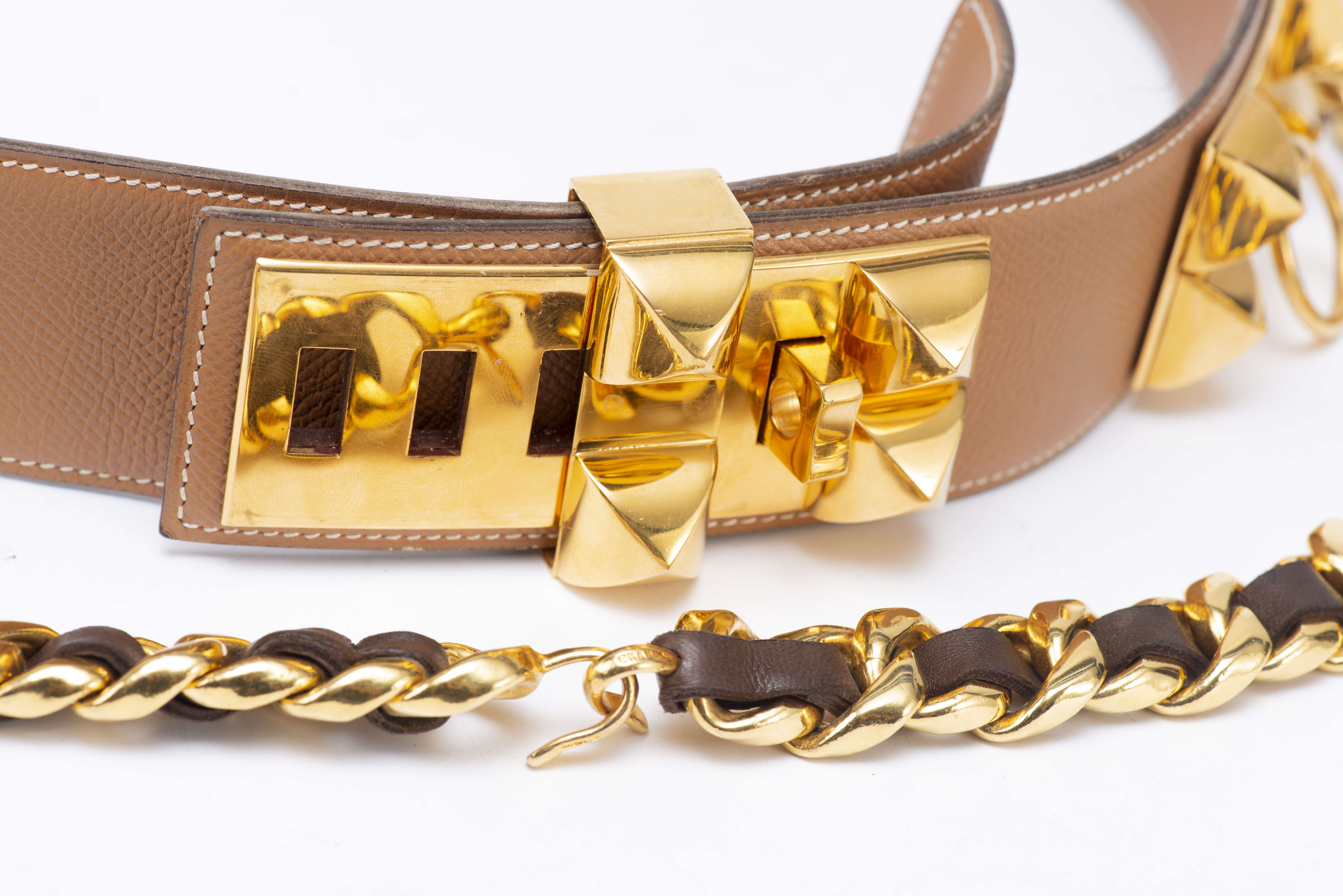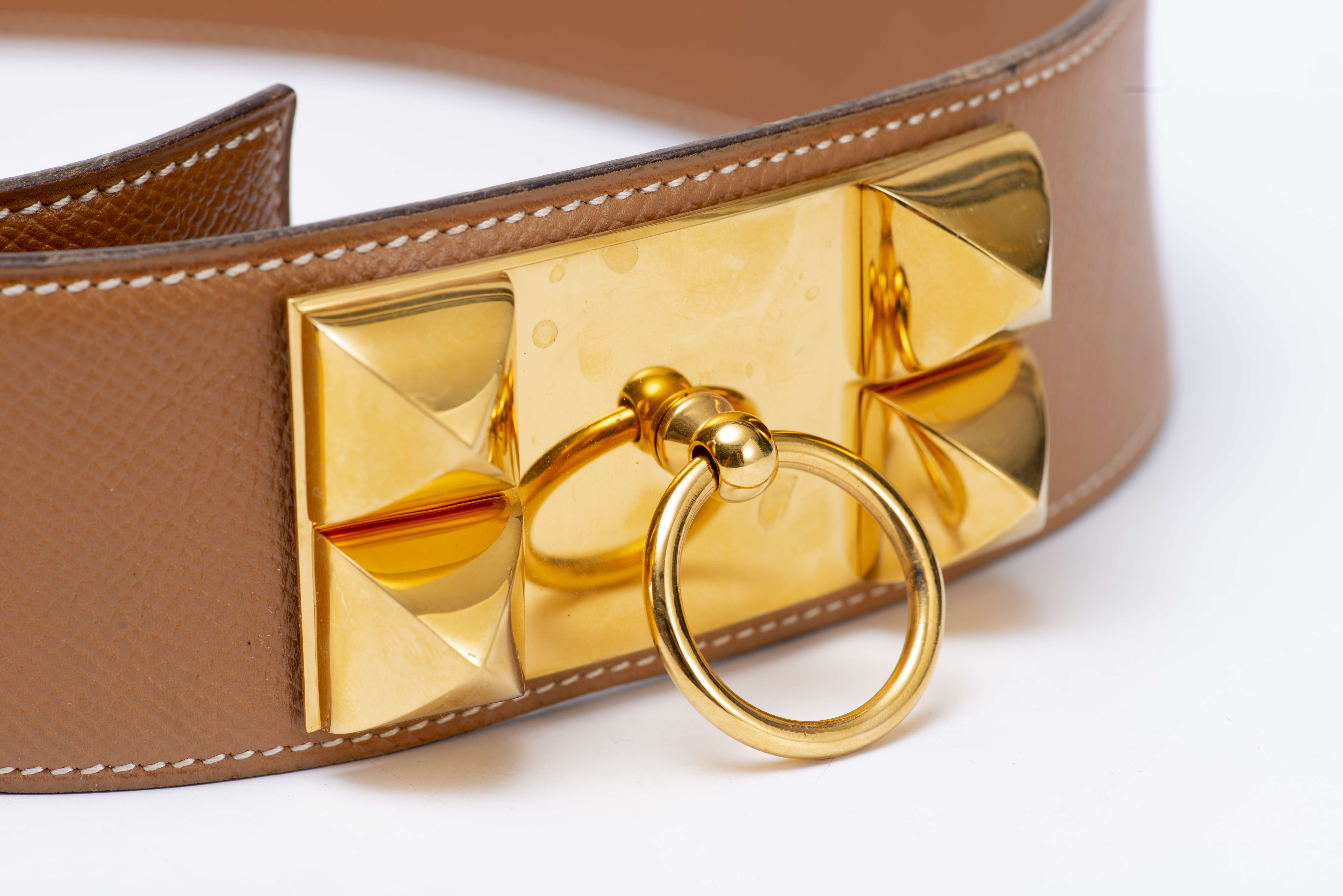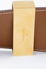 Hermès Paris, ceinture Médor en cuir epsom beige, avec grniture cloutée en métal doré
