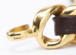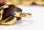 Chanel, ceinture en maillons en métal doré entrelacés d'une lanière de cuir brun, fermeture composée de deux crochets ouverts