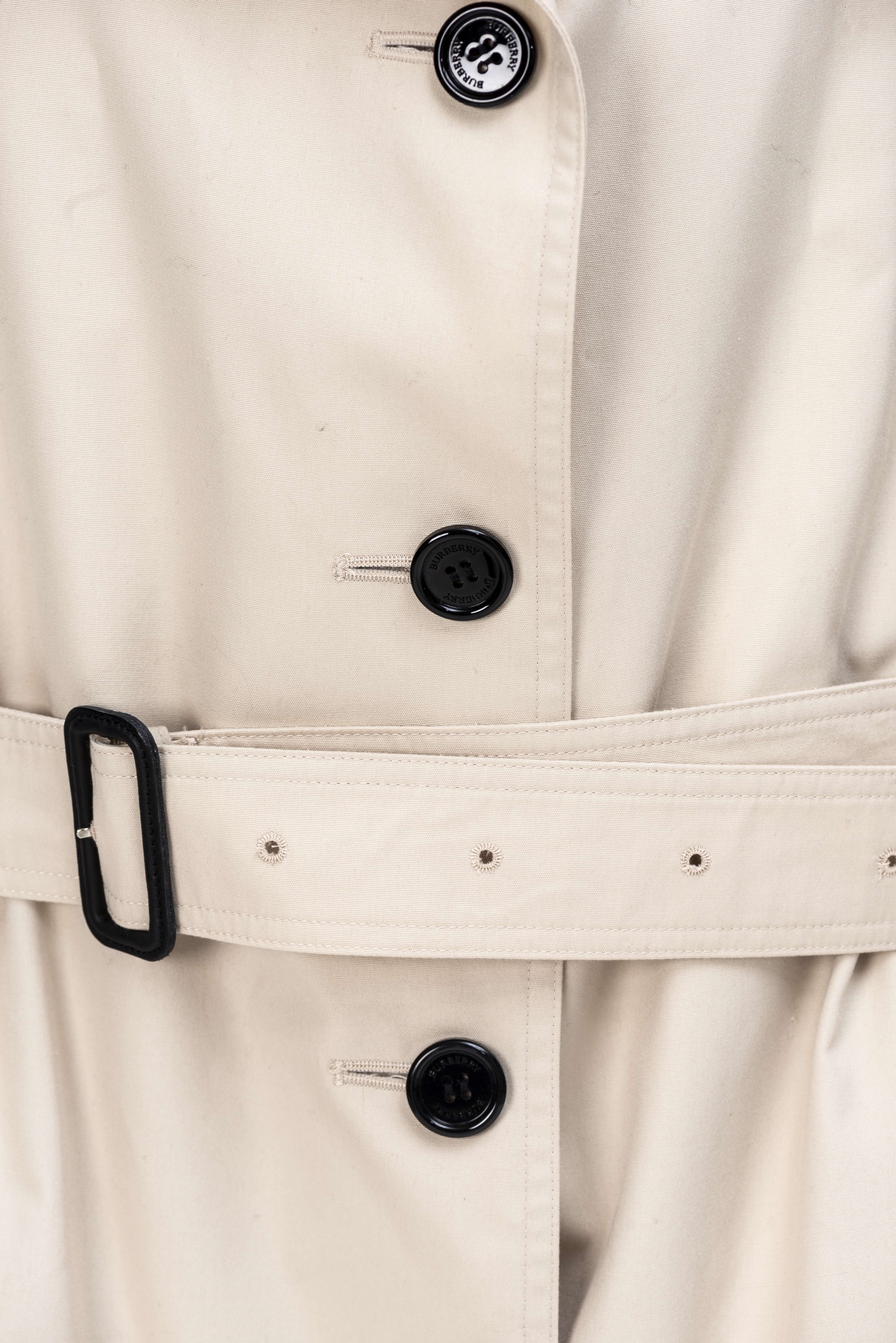 Burberry, manteau imperméable beige à boutons noirs, 65% polyester et 35% coton, fabriqué en Angleterre. T. 48
